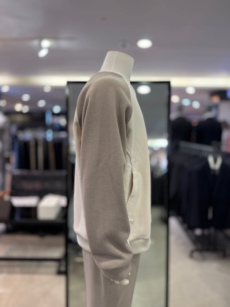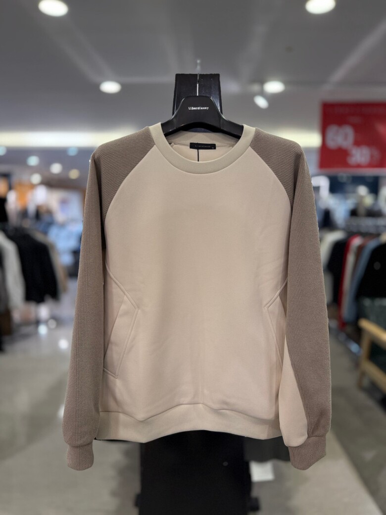 리버클래시 베이지 라인 절개 배색 오버핏 맨투맨 LLF41605