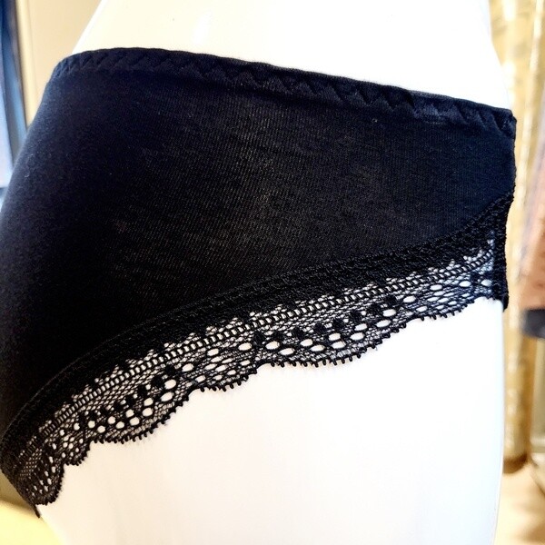 뒷판엔 신축이 좋은 모달원단과 소폭레이스를 매치해엉덩이를 안정감있게 잡아줍니다.