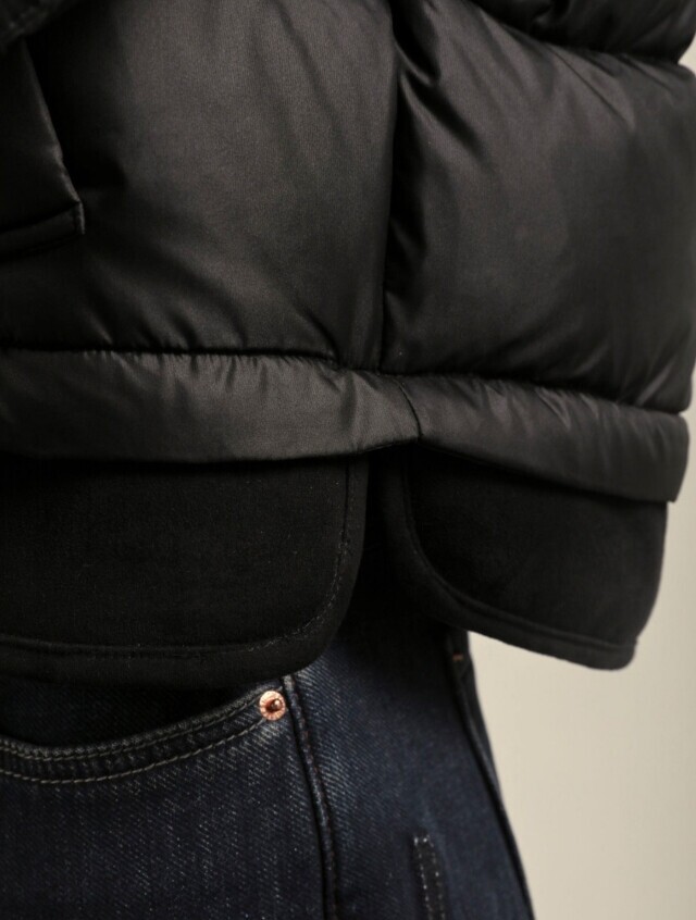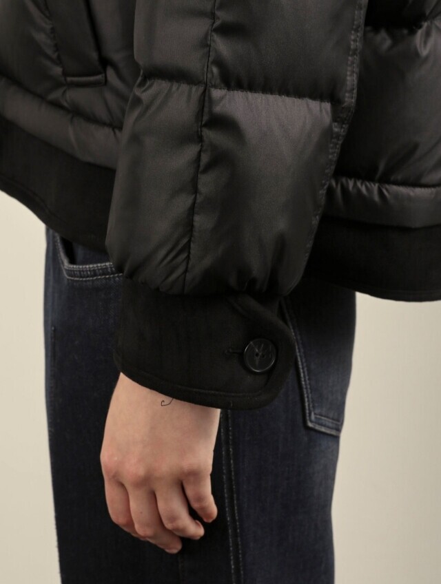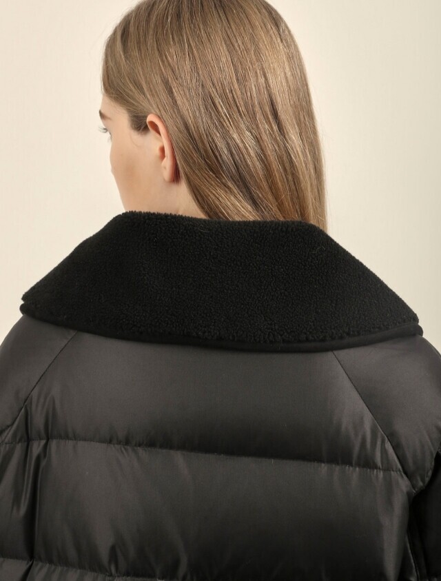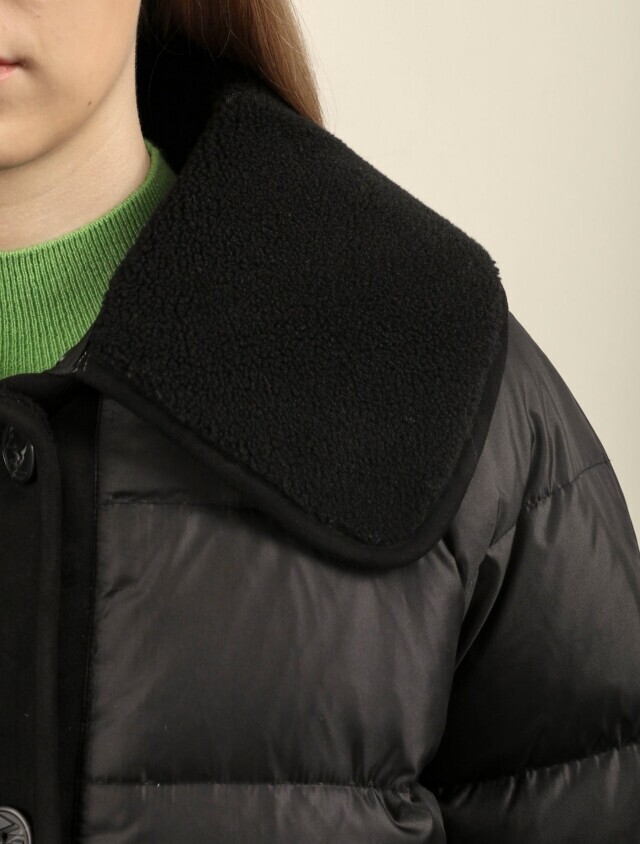 카라는 탈부착이 가능하며 둥근 형태의 실루엣입니다