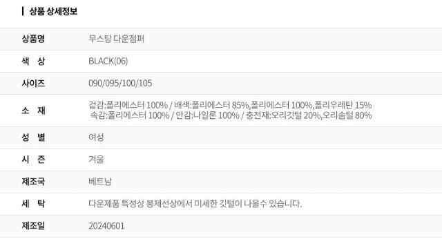 | 6. 세탁방법 및 취급시 주의사항 | 상품상세참조 |