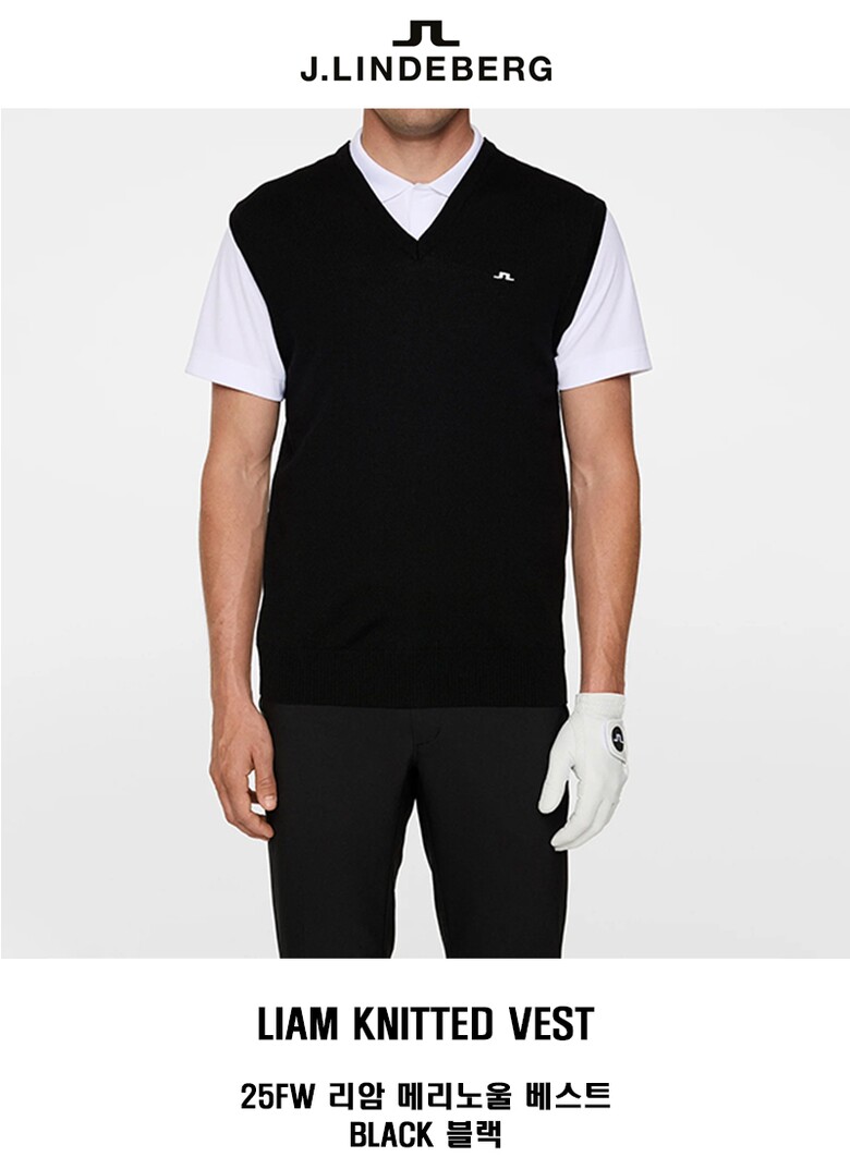 [럭스덕/국내당일] 제이린드버그 25FW 리암 메리노울 니트 베스트 블랙 GMKW12909 9999