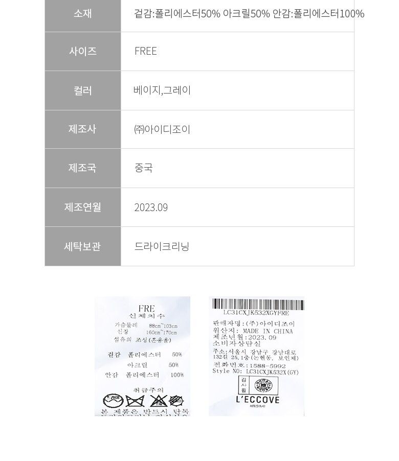 | 2. 색상 | BE_베이지/GY_그레이 |