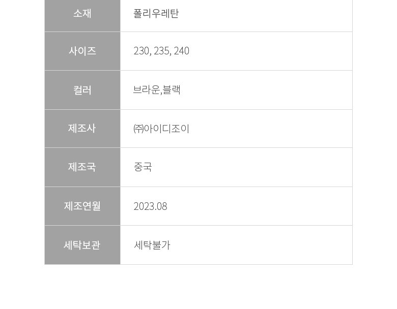 1. 제품 소재 (운동화인 경우에는 겉감, 안감을 구분하여 표시) | 상세페이지 참조 |