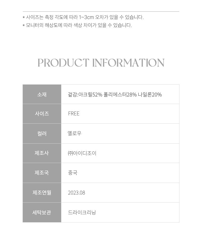 3. 치수 | 상세페이지 참조 |