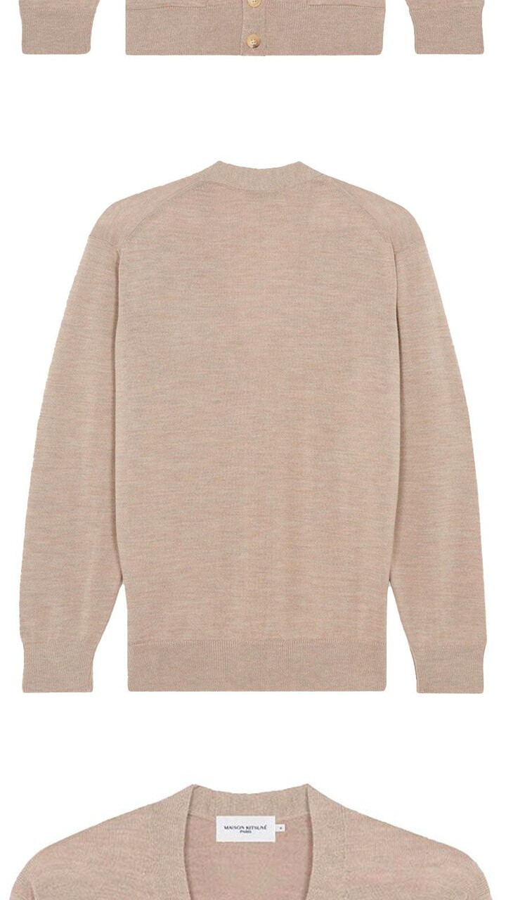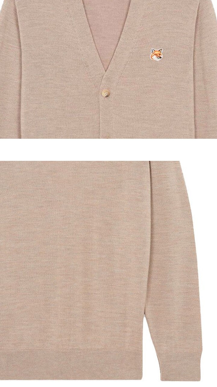 메종키츠네 25SS 남성 폭스헤드 패치 브이넥 가디건 베이지멜란지 GU00542KT1036 H250