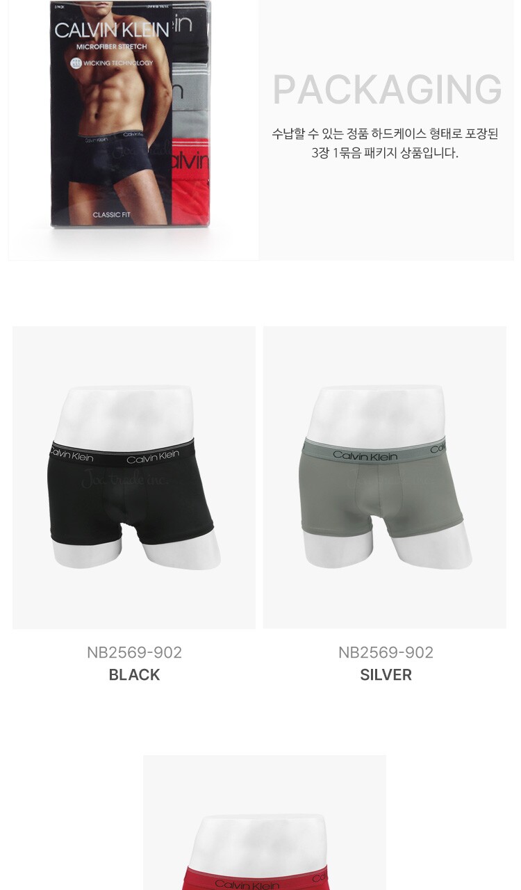 CK 언더웨어 남성 속옷 3장 세트 드로즈 팬티 사각 NB2569 902