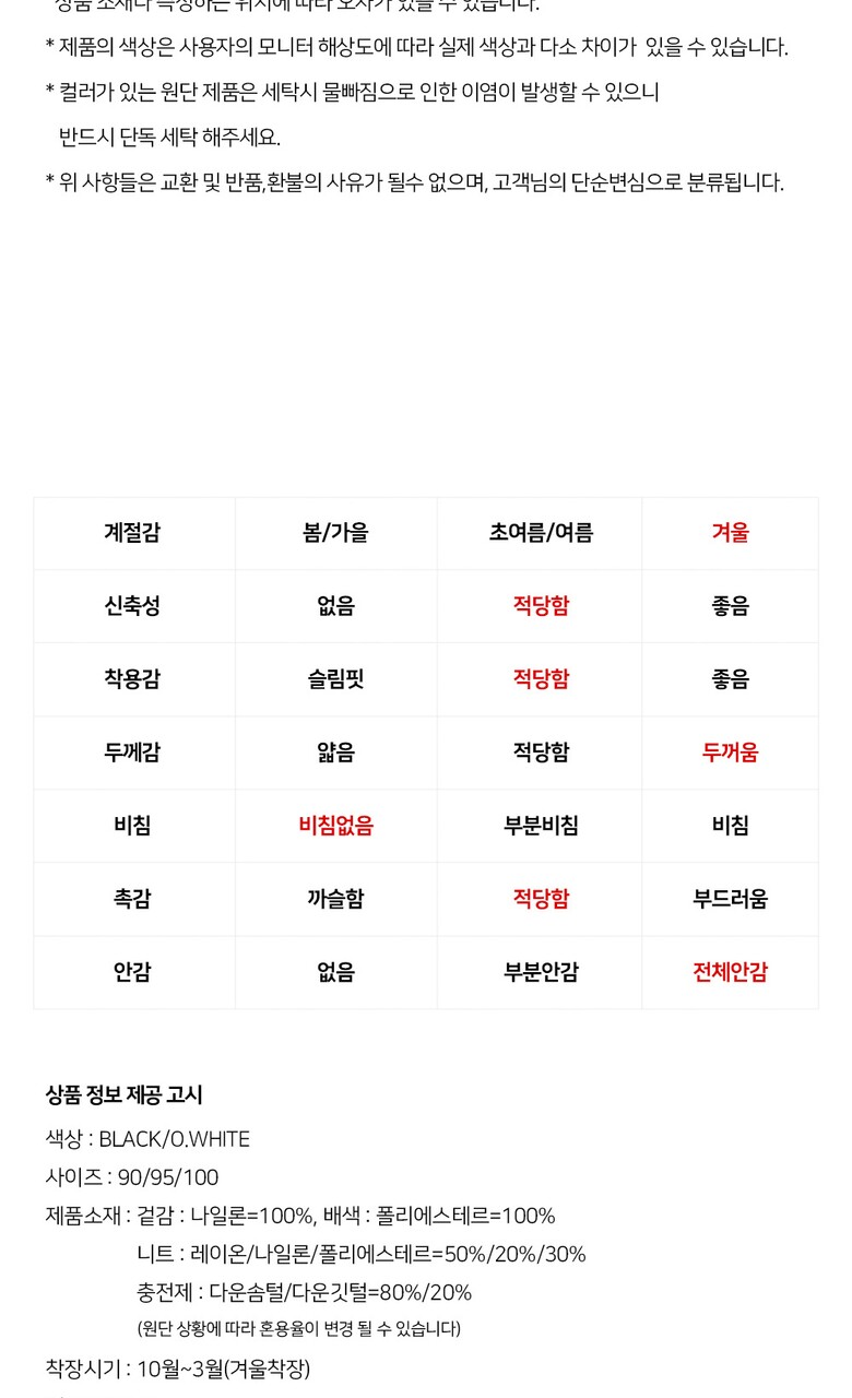 1. 제품 소재 (섬유의 조성 또는 혼용률을 백분율로 표시, 기능성인 경우 성적서 또는 허가서) | 상품 이미지 참고 |