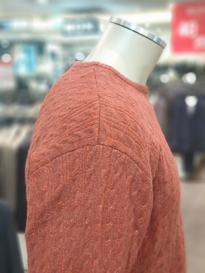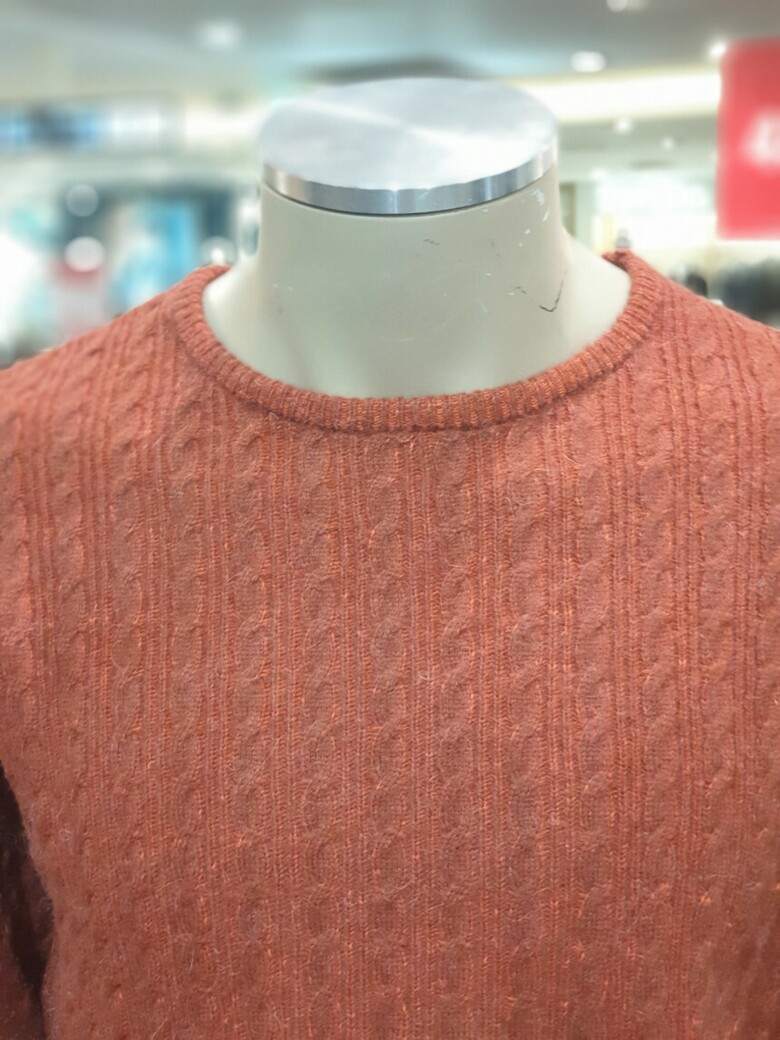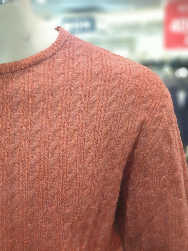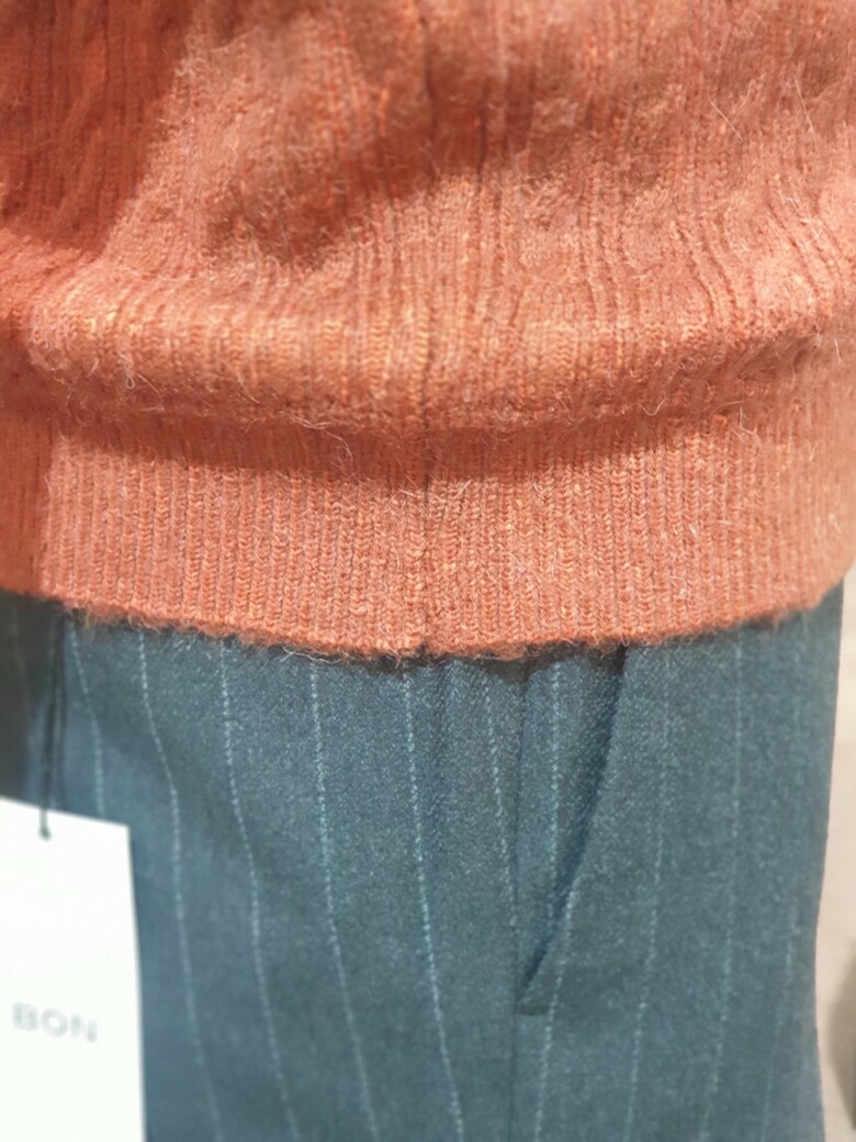 BO25FW 핑크 투톤 케이블 울 알파카 라운드 캐주얼 니트 스웨터BNEFSW821PI