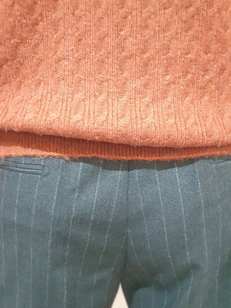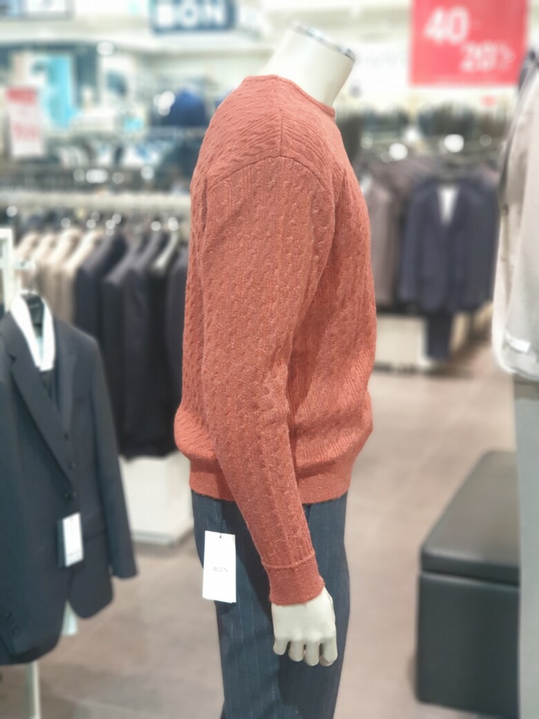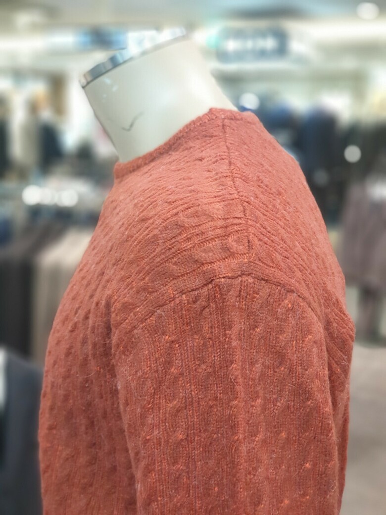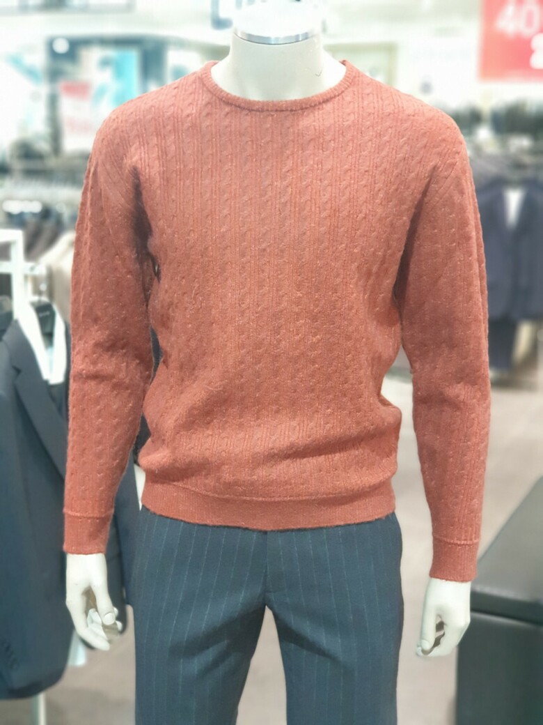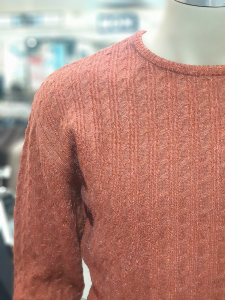 BO25FW 핑크 투톤 케이블 울 알파카 라운드 캐주얼 니트 스웨터BNEFSW821PI