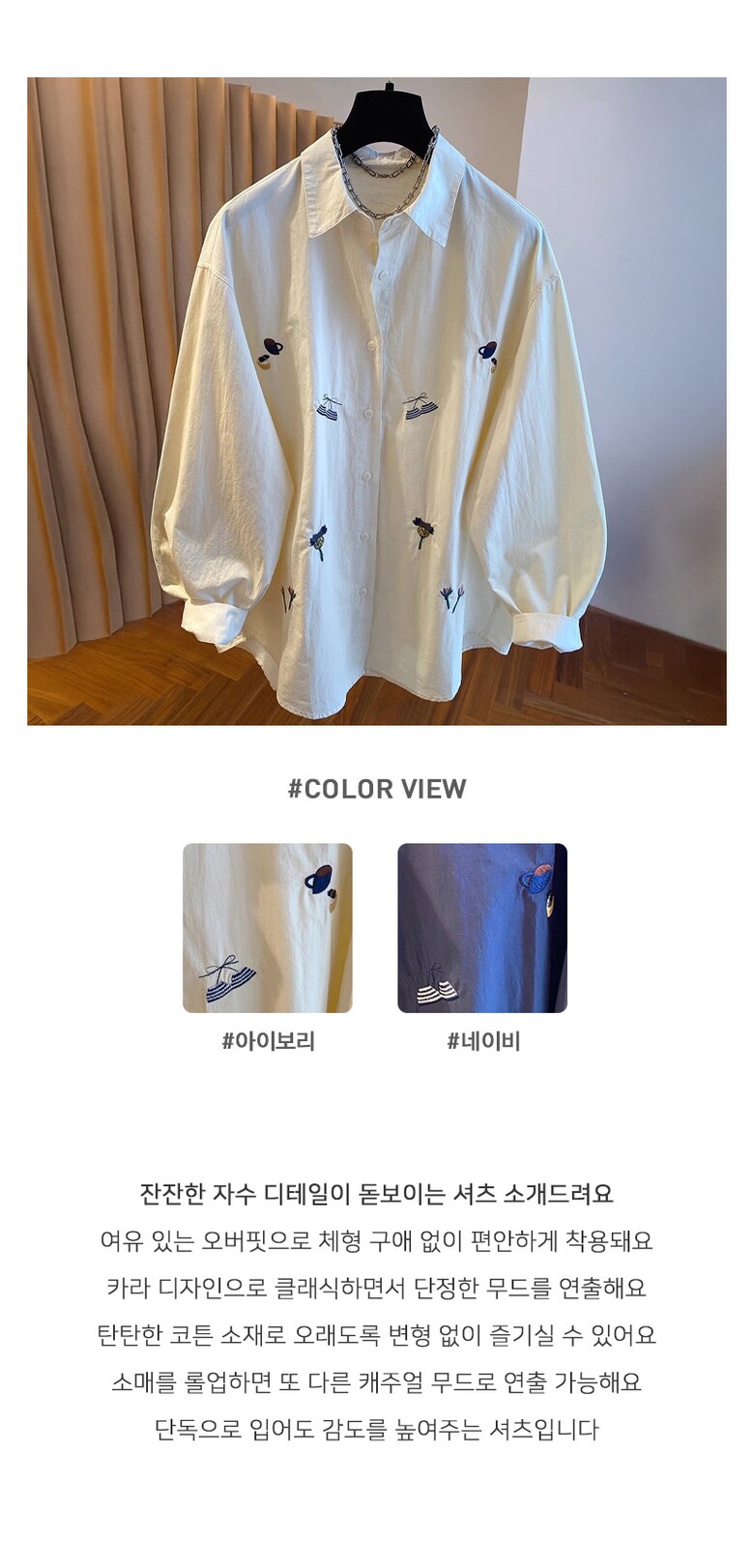 [~77까지]헤타 소프트 러블리 불륨 자수 오버핏 셔츠