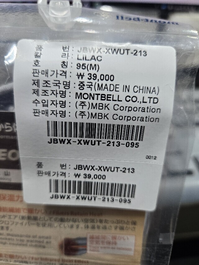 | 6. 세탁방법 및 취급시 주의사항 | Tag 고리등의 날카로운 부분으로 인해 부상을입을 우려가 있으니 착용전 반드시 제거해 주세요. |