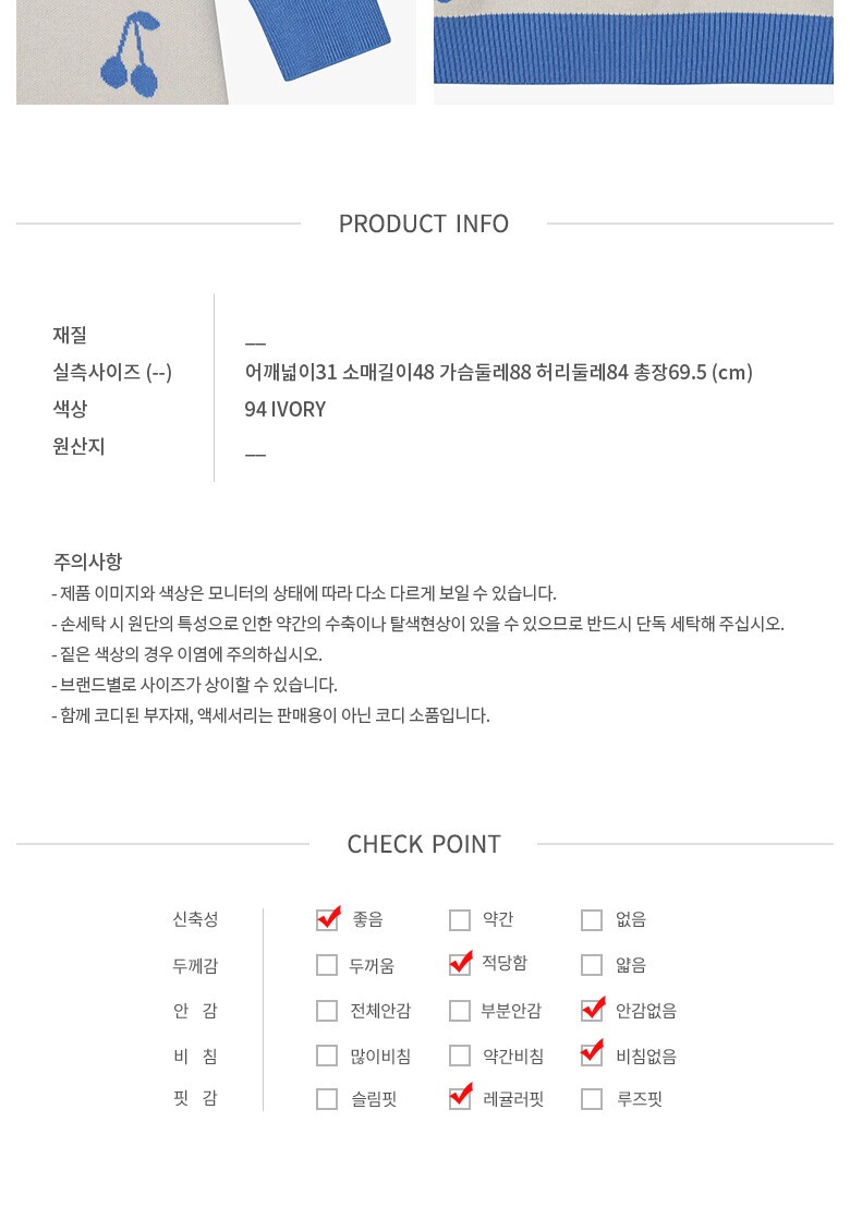 • 처음 배송된 상품상태와 다를 경우(세탁/착용 후 외출하신 경우) 반품이 불가합니다.