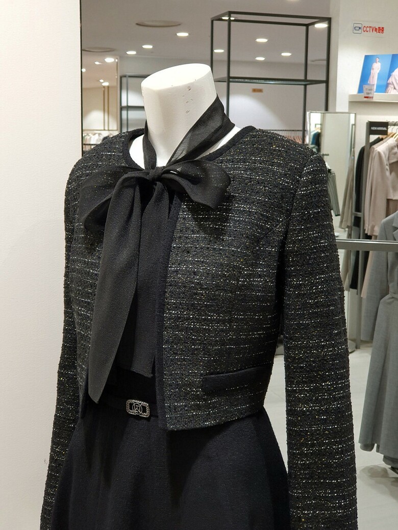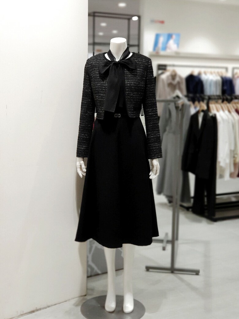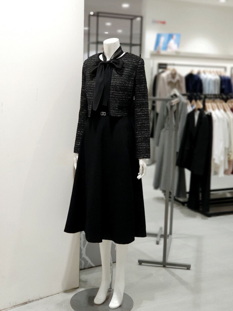 탈부착 가능한 리본 타이가 포인트인 미디 기장의 원피스입니다.