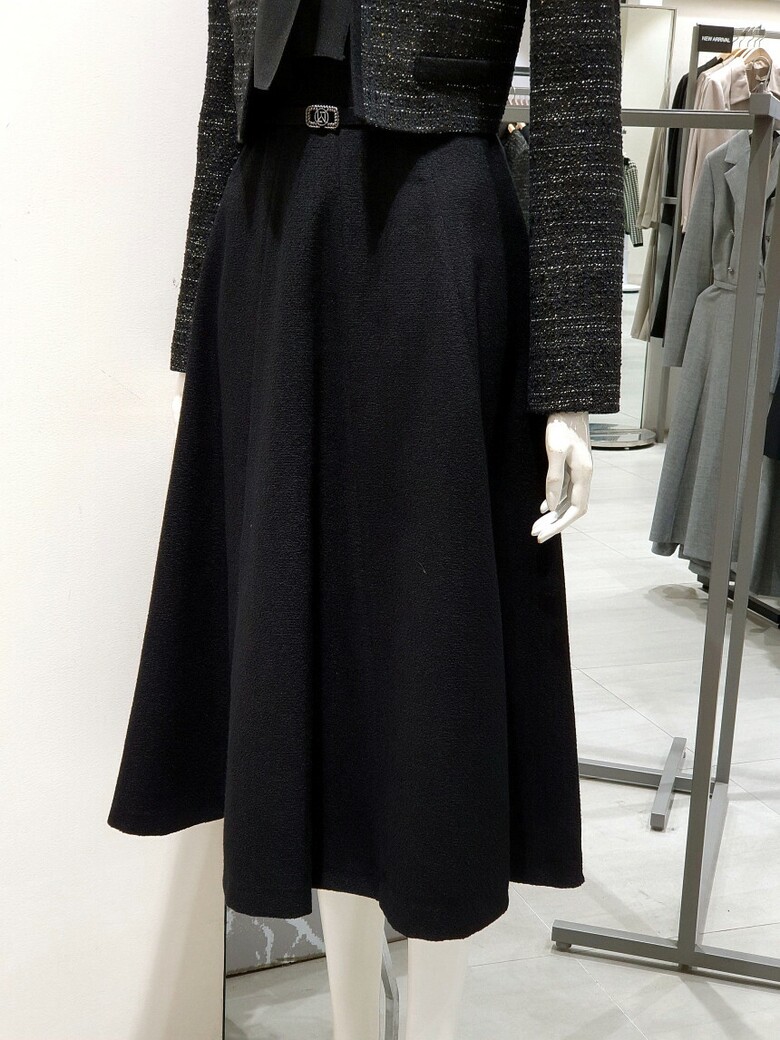 자연스러운 플레어 주름으로 A 라인 실루엣이 연출되며