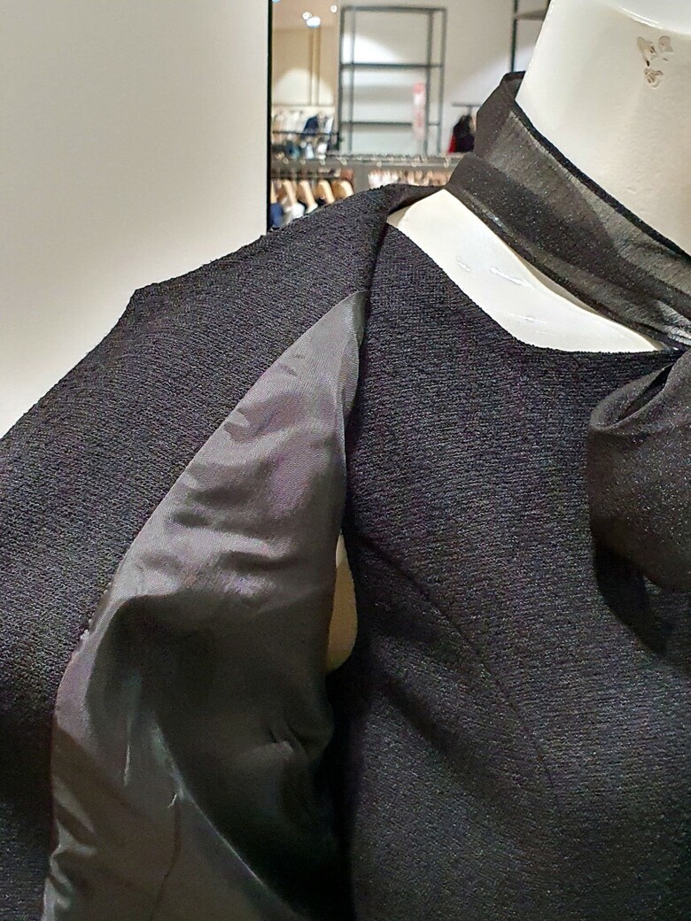 후면 혼솔 지퍼 클로징으로 깔끔한 여밈이 가능합니다.