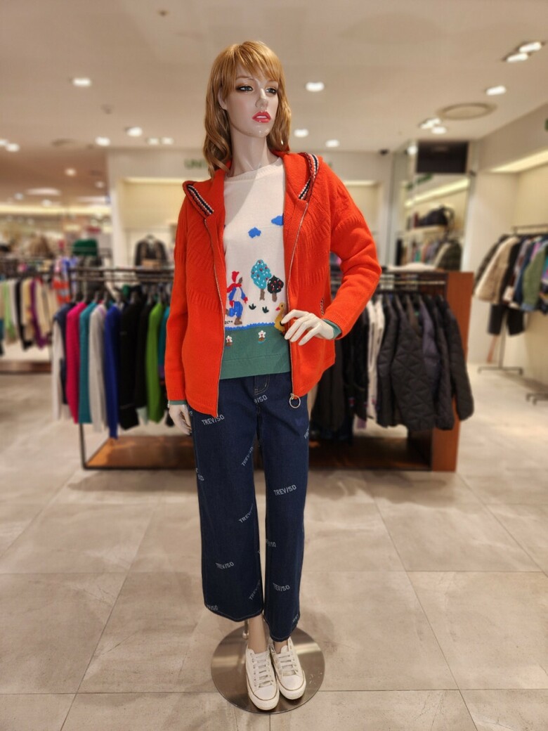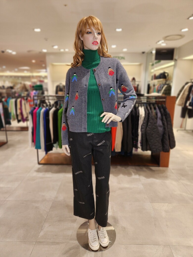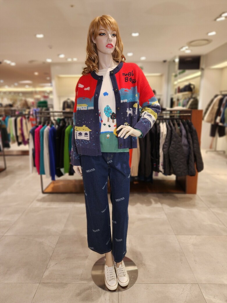 7.니트류는 자가드 프린트 기법으로 제작되어 앞부분에 예쁜 프린트처리가 되어 있습니다