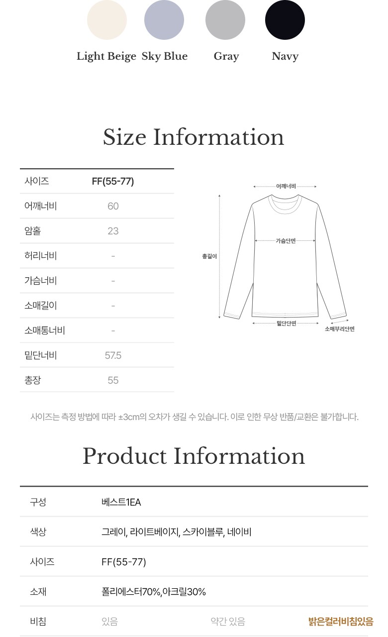 2. 색상 | 그레이,라이트베이지,스카이블루,네이비 |