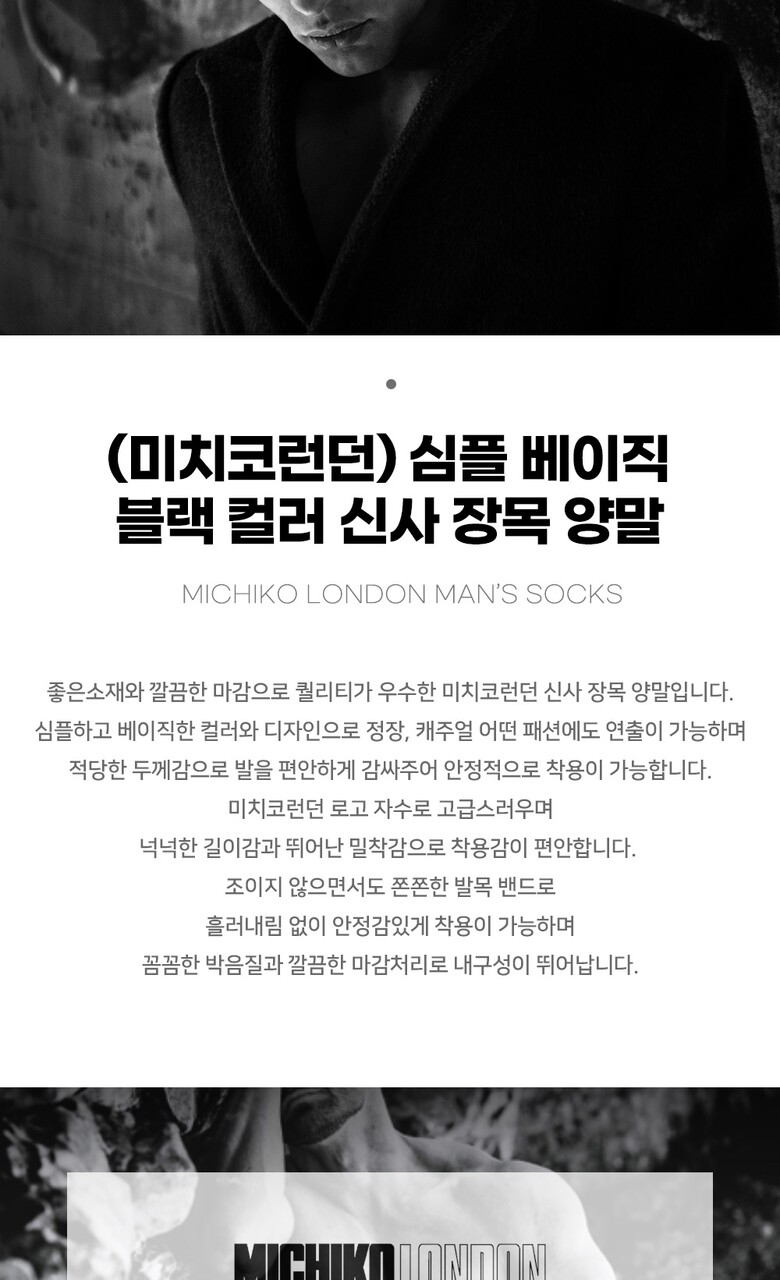 미치코런던 심플 베이직 블랙 컬러 신사 장목 양말0027yr