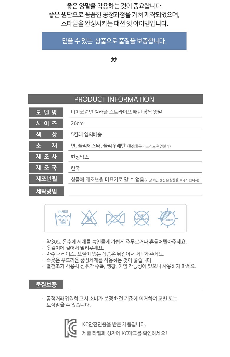 | 6. 세탁방법 및 취급시 주의사항 | 30도 온수로 중성세제를 사용하여 손세탁 및 분리세탁을 권장합니다. |