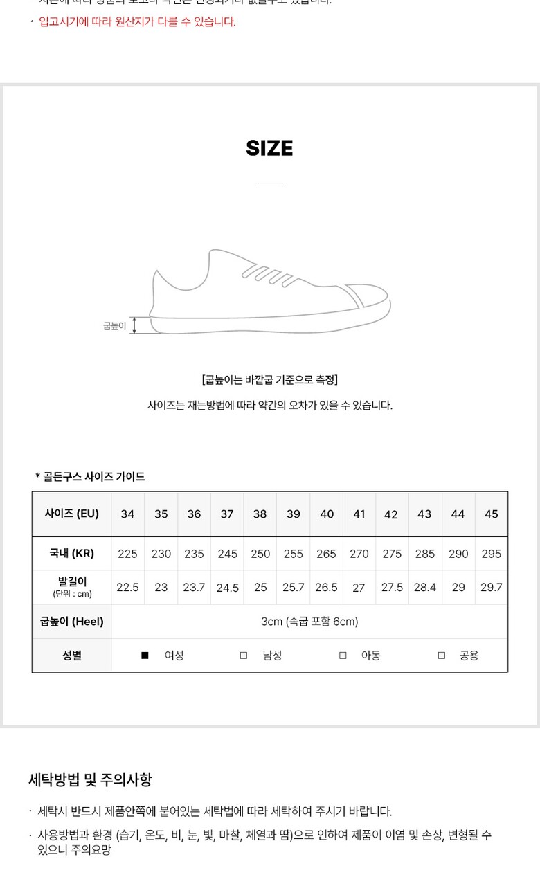 3. 치수 EU34(225),EU35(230),EU36(235),EU37(245),EU38(250),EU39(255),EU40(265),EU41(270),EU42(275)