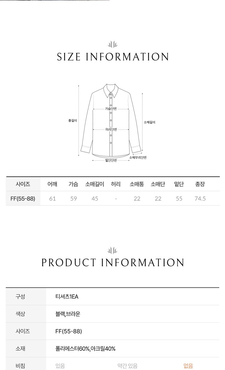 • 처음 배송된 상품상태와 다를 경우(세탁/착용 후 외출하신 경우) 반품이 불가합니다.