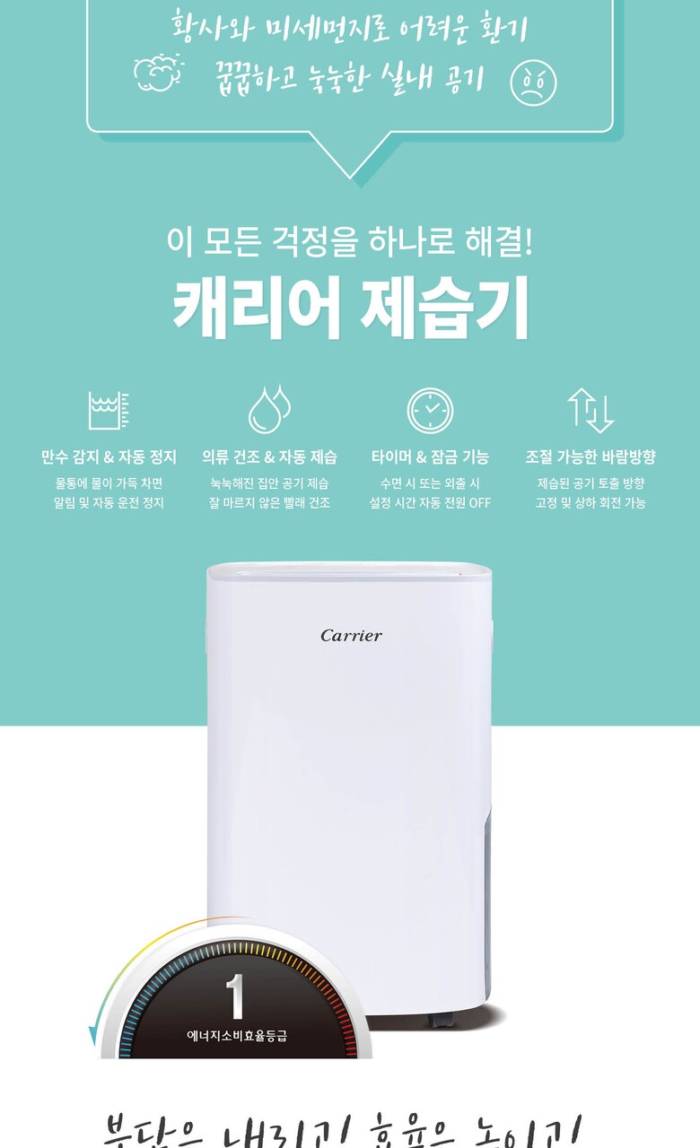 캐리어 20리터 1등급 제습기 CDHB-200AXLWWXH