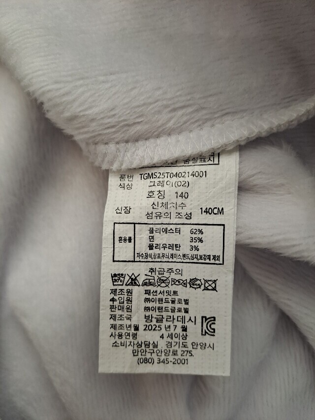 | 1. 제품 소재 (섬유의 조성 또는 혼용률을 백분율로 표시, 기능성인 경우 성적서 또는 허가서) | 상품상세참조 |