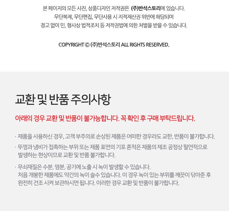 상품불량에 의한 반품, A/S, 품질보증 및 피해보상 등에 관한 사항은 소비자 분쟁해결기준(공정거래위원회 고시) 구매자가 미성년자인 경우에는 상품 구입시 법정대리인이 동의하지 아니하면 미성년자 본인 또는 법정대리인이 구매취소 할 수 있습니다. |
