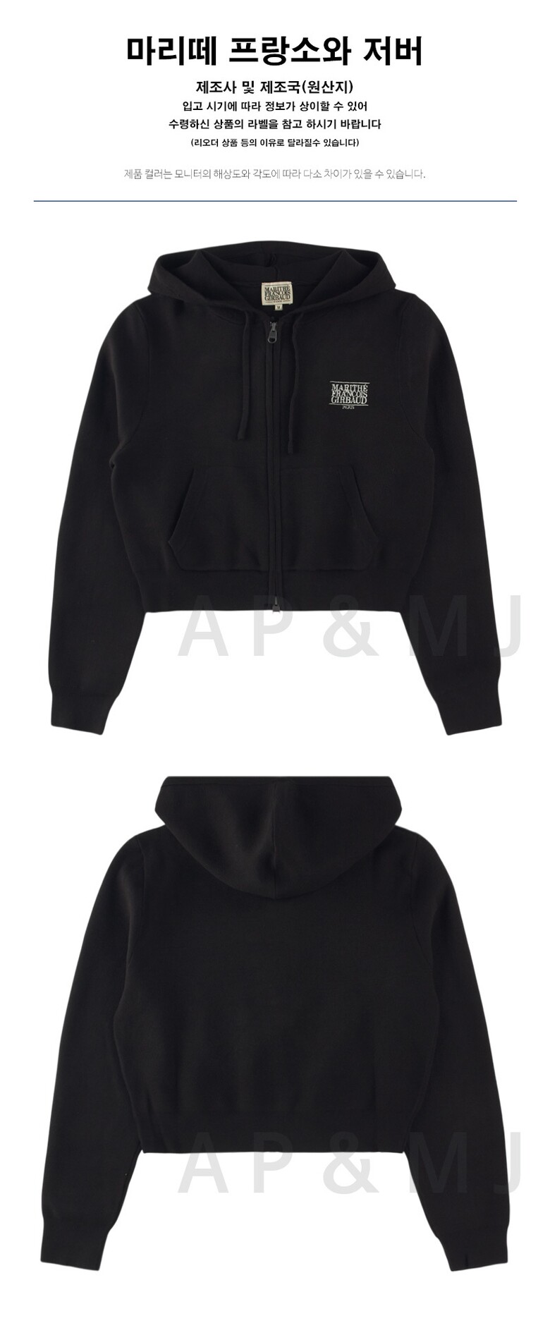 마리떼 여성 클래식 로고 크롭 니트 후드 집업 MFG45CCD110 BLK