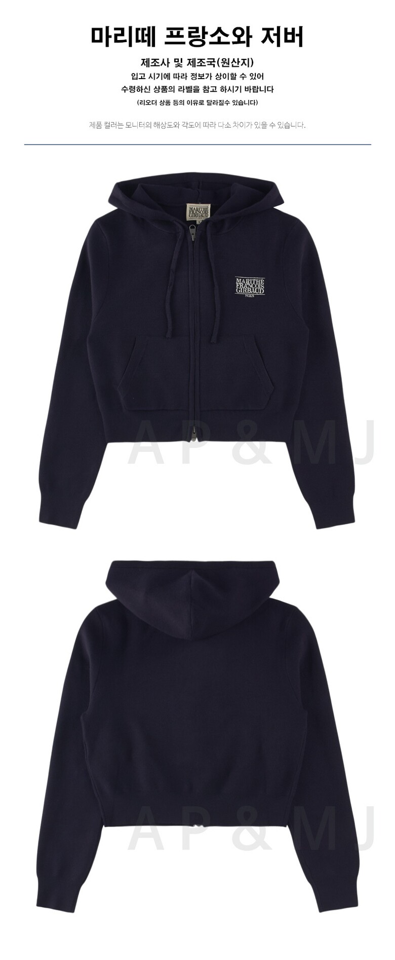 마리떼 여성 클래식 로고 크롭 니트 후드 집업 MFG45CCD110 NVY