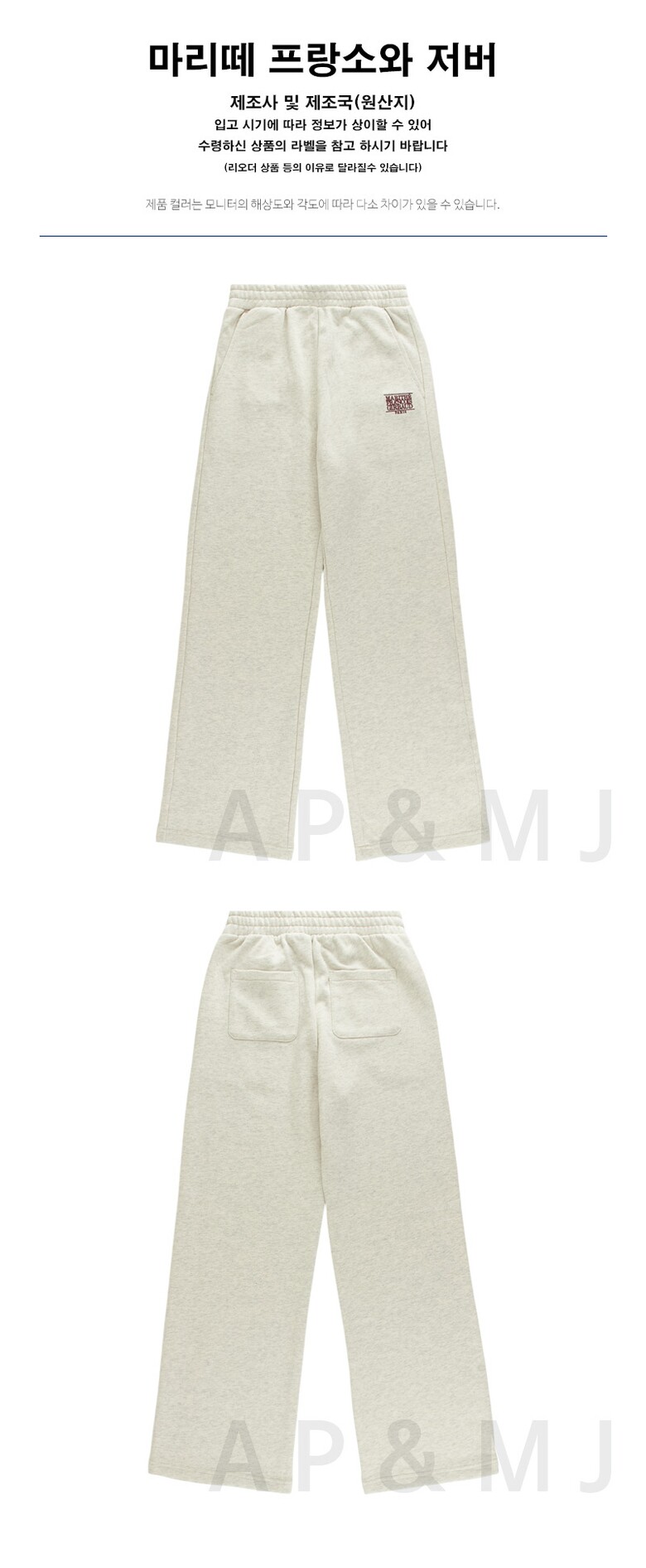 마리떼 여성 자수 클래식 로고 스웨트 팬츠 MFG45CSP109 OTM