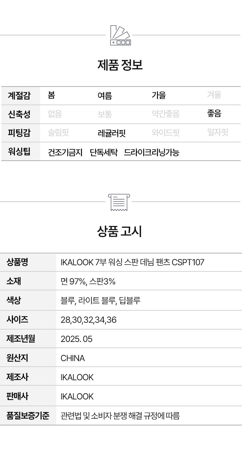 | 6. 세탁방법 및 취급시 주의사항 | 상세페이지 참고 |
