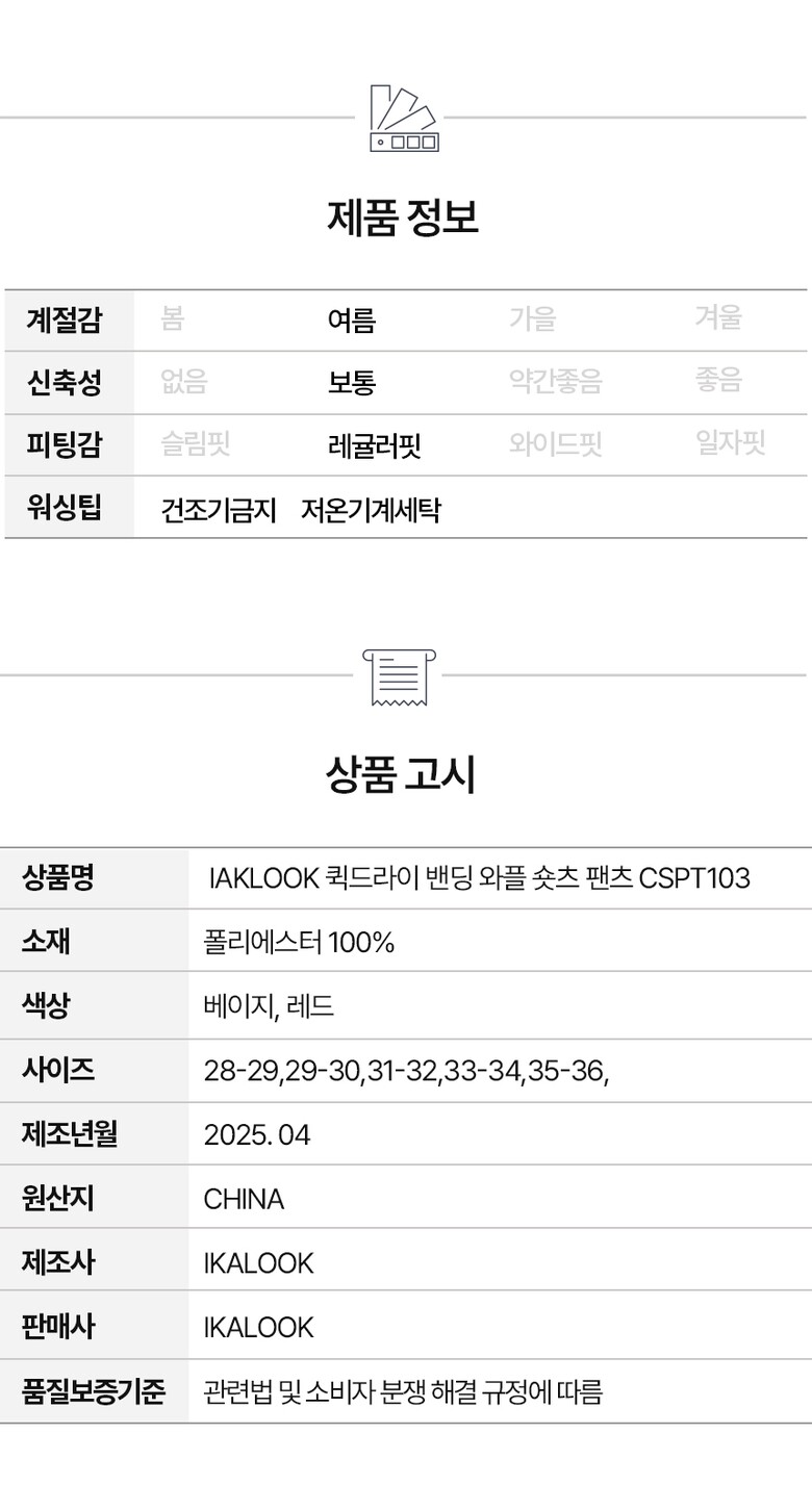 IAKLOOK 퀵드라이 밴딩 와플 숏츠 팬츠 CSPT103