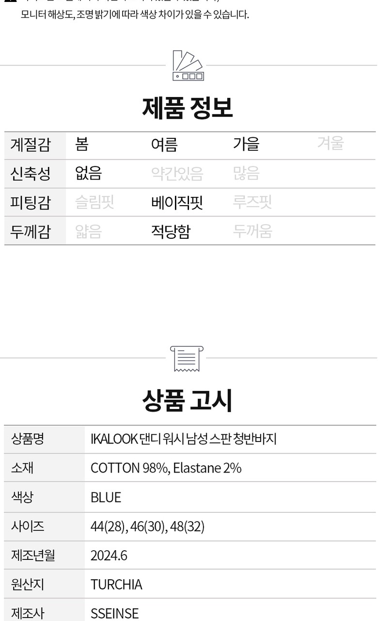 IKALOOK 댄디 워시 남성 스판 청반바지 BSPT103