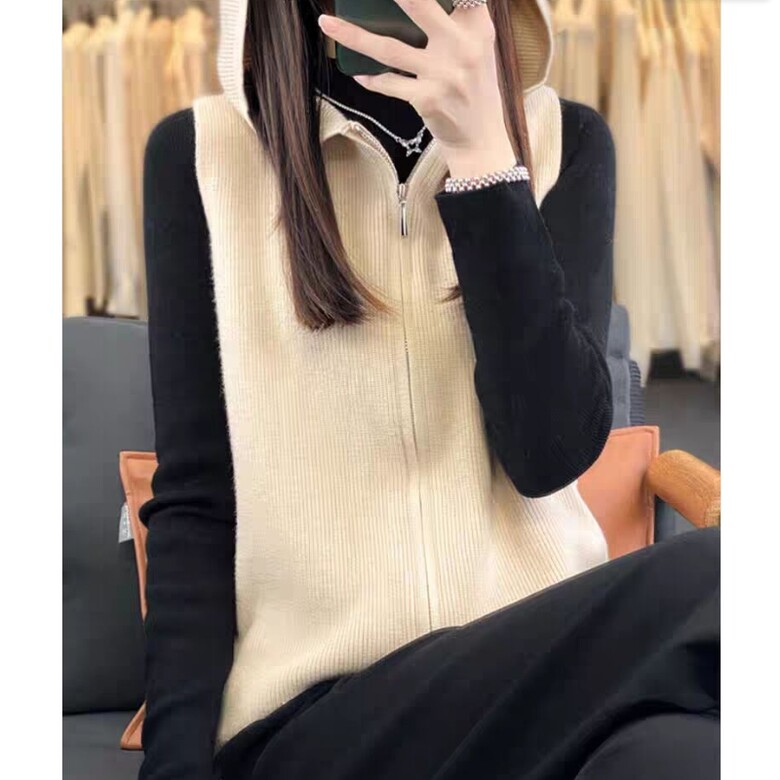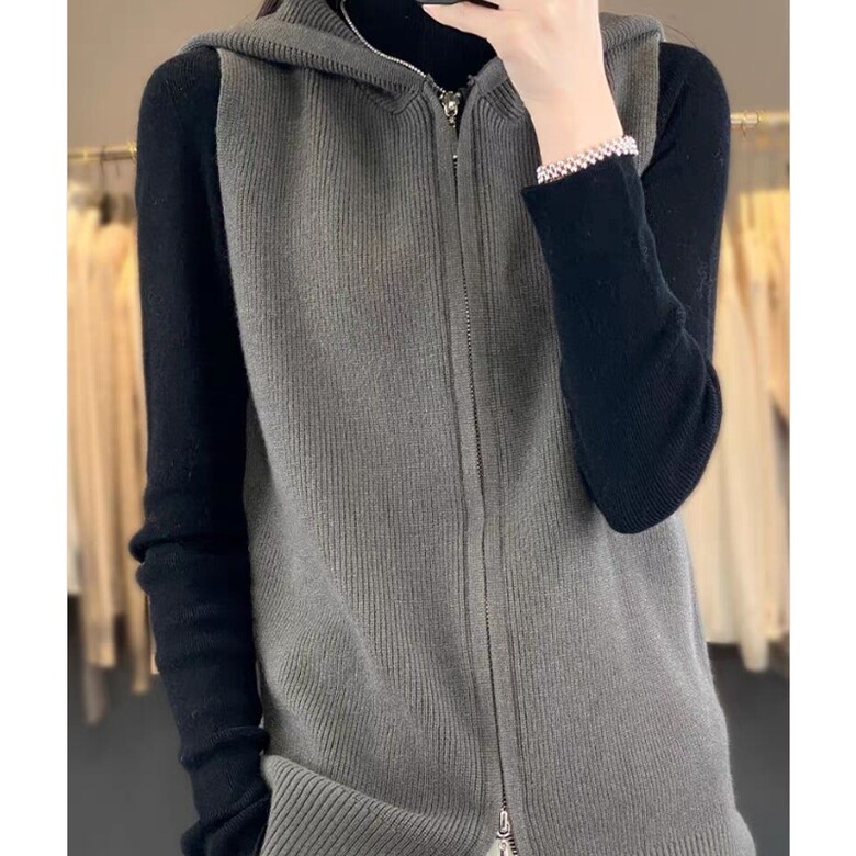 로나 후드 집업 레이어드 니트 베스트_250910_JY07