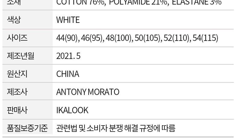 1. 제품 소재 (섬유의 조성 또는 혼용률을 백분율로 표시, 기능성인 경우 성적서 또는 허가서) 상세페이지 참고