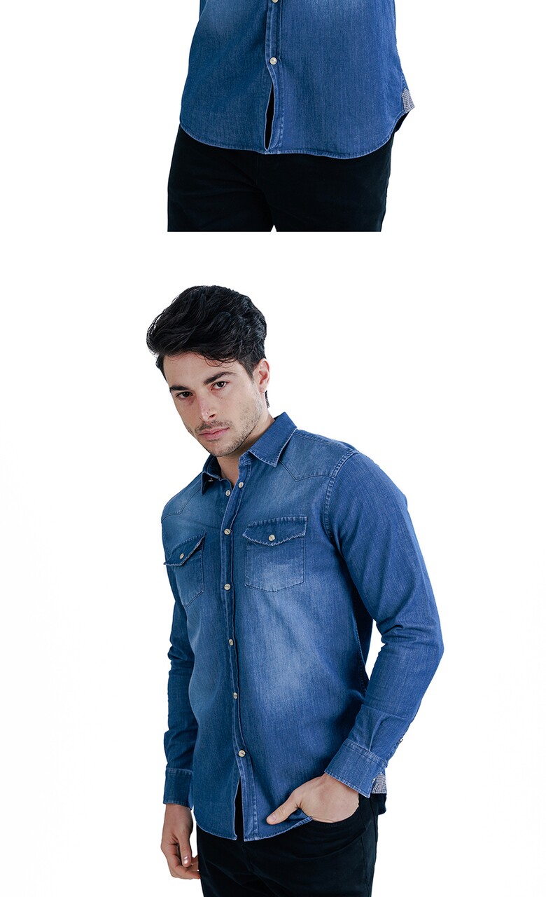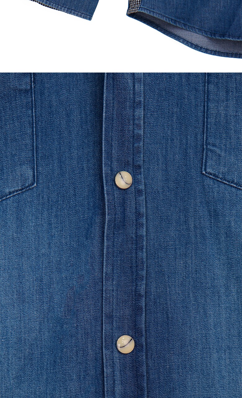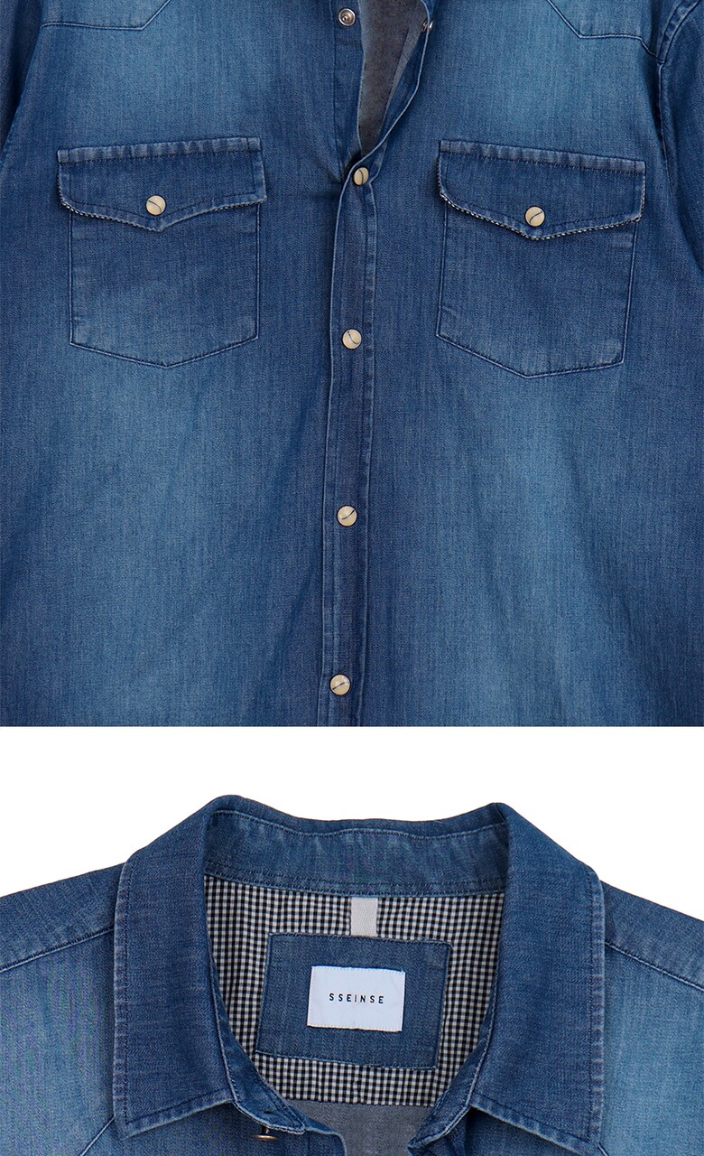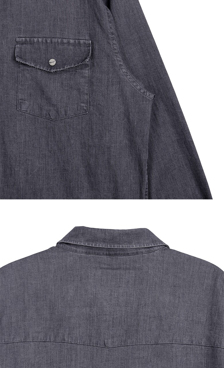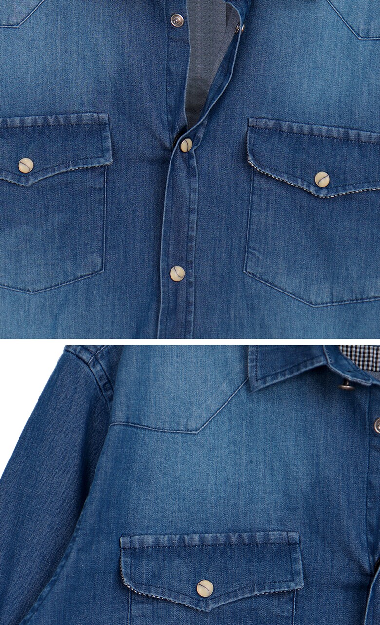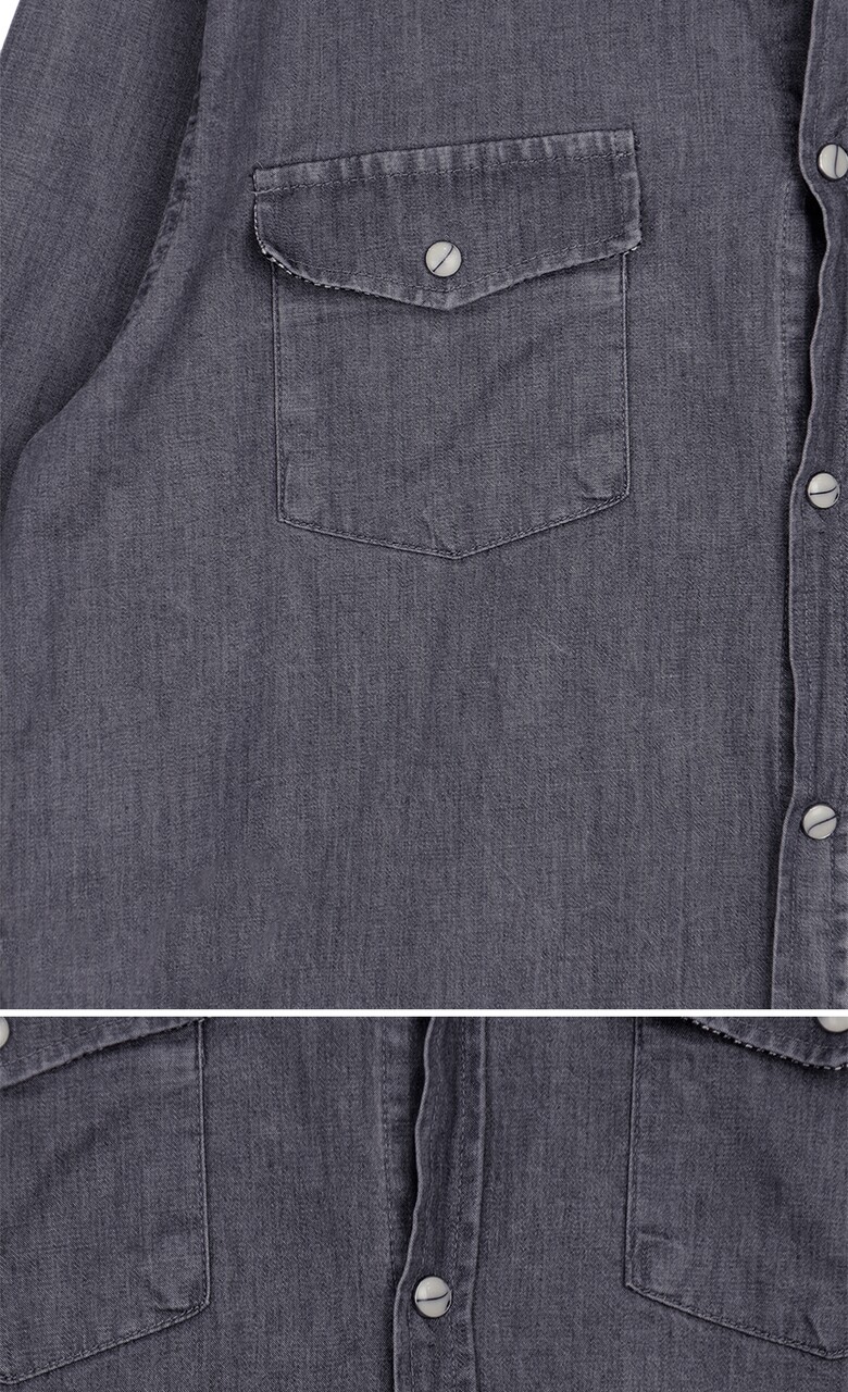남성 스냅 단추 포인트 슬림핏 스판 데님 셔츠 ASH139