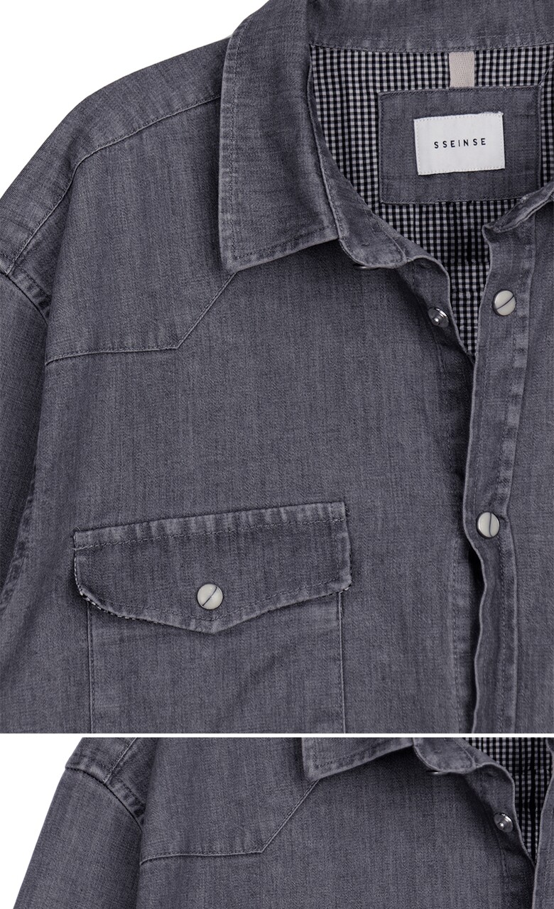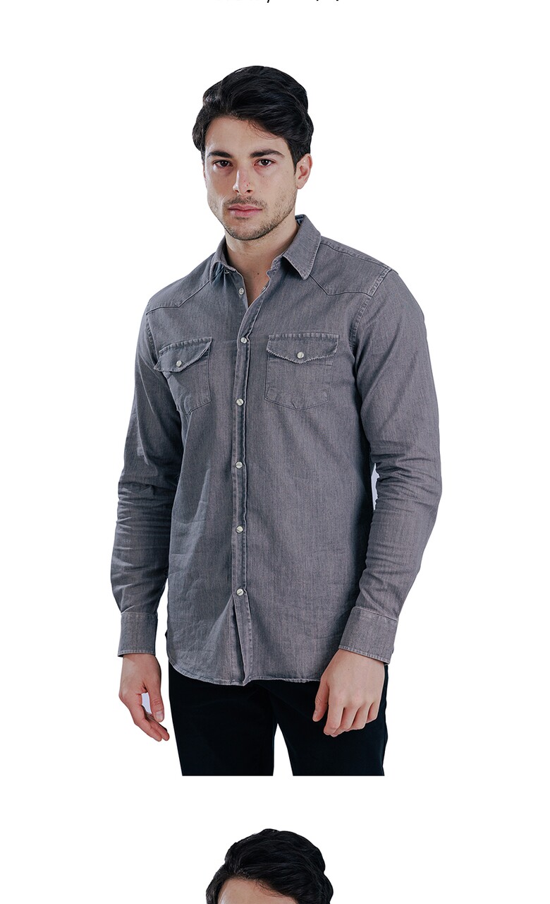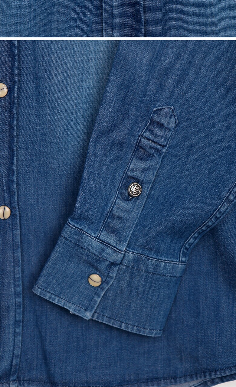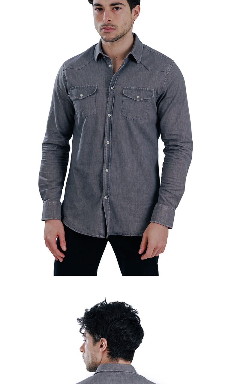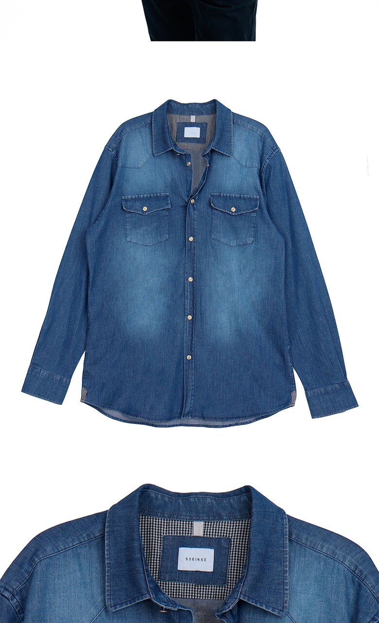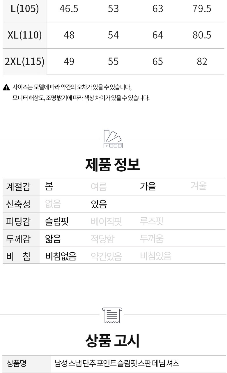남성 스냅 단추 포인트 슬림핏 스판 데님 셔츠 ASH139