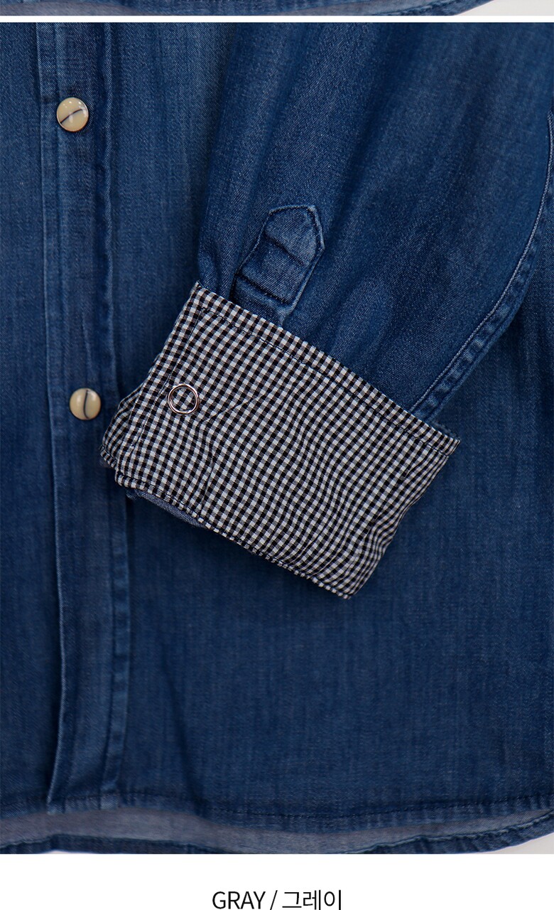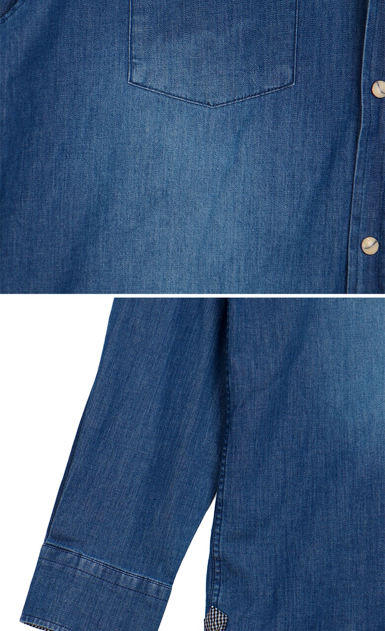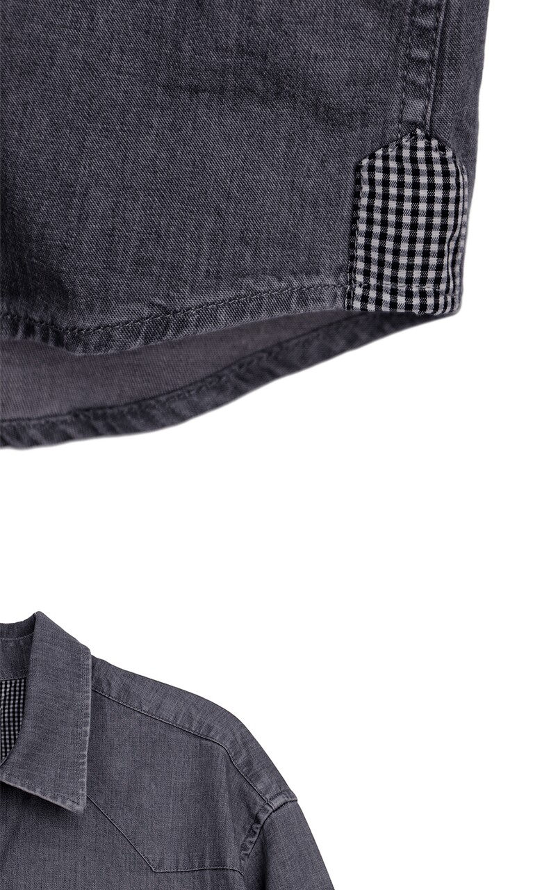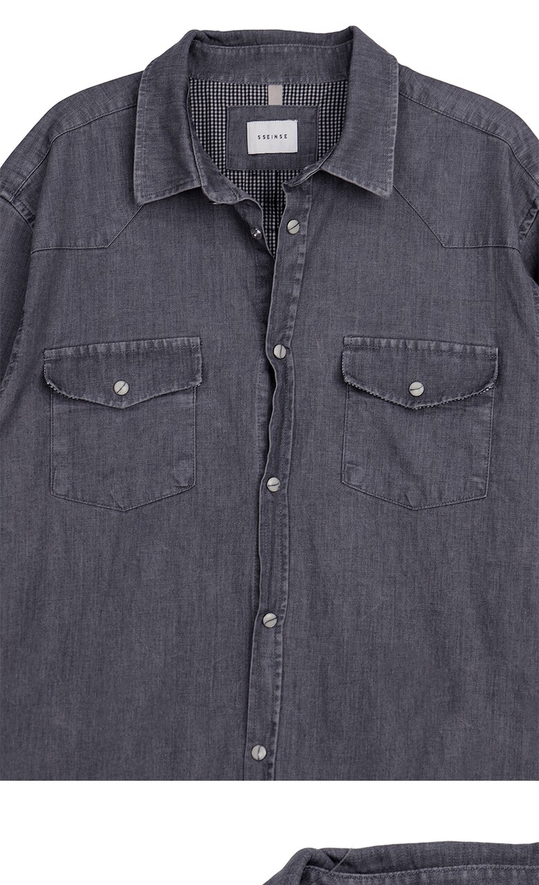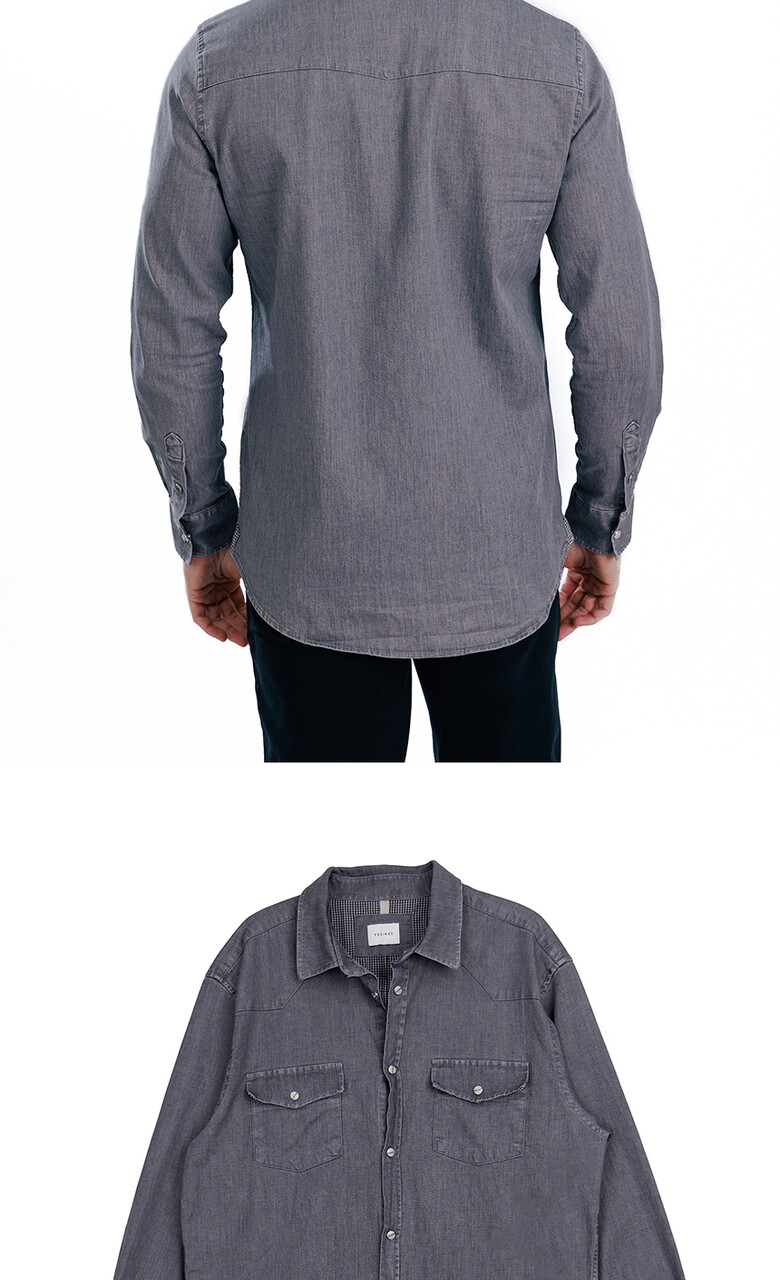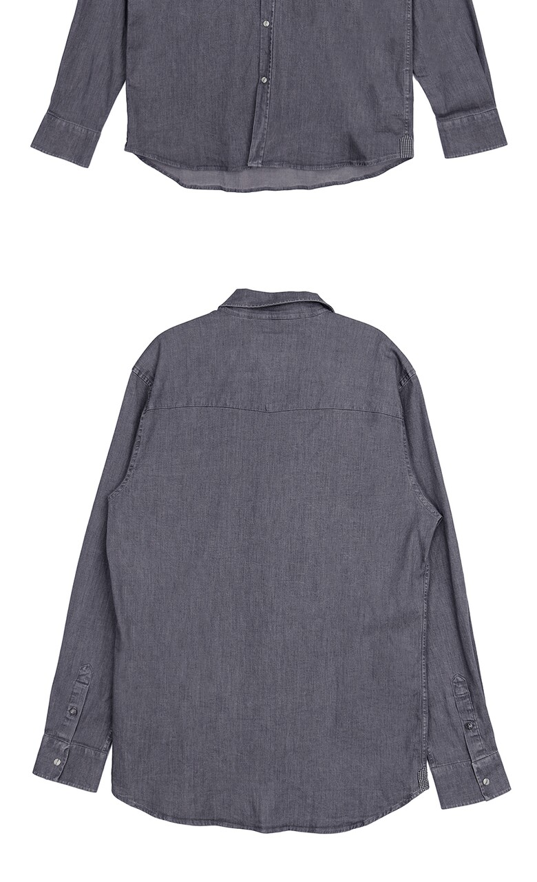 남성 스냅 단추 포인트 슬림핏 스판 데님 셔츠 ASH139