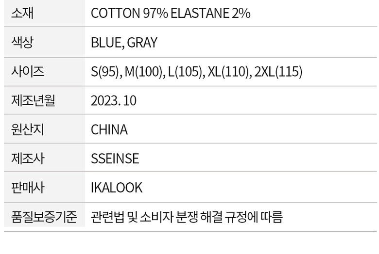 1. 제품 소재 (섬유의 조성 또는 혼용률을 백분율로 표시, 기능성인 경우 성적서 또는 허가서) | 상세페이지 참고 |