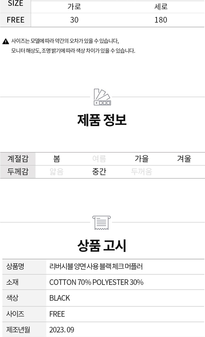 리버시블 양면 사용 블랙 체크 머플러 AMU117