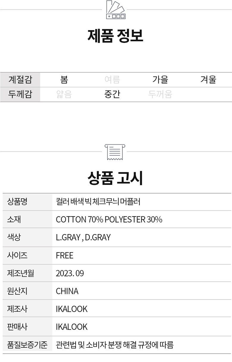컬러 배색 빅 체크무늬 머플러 AMU118
