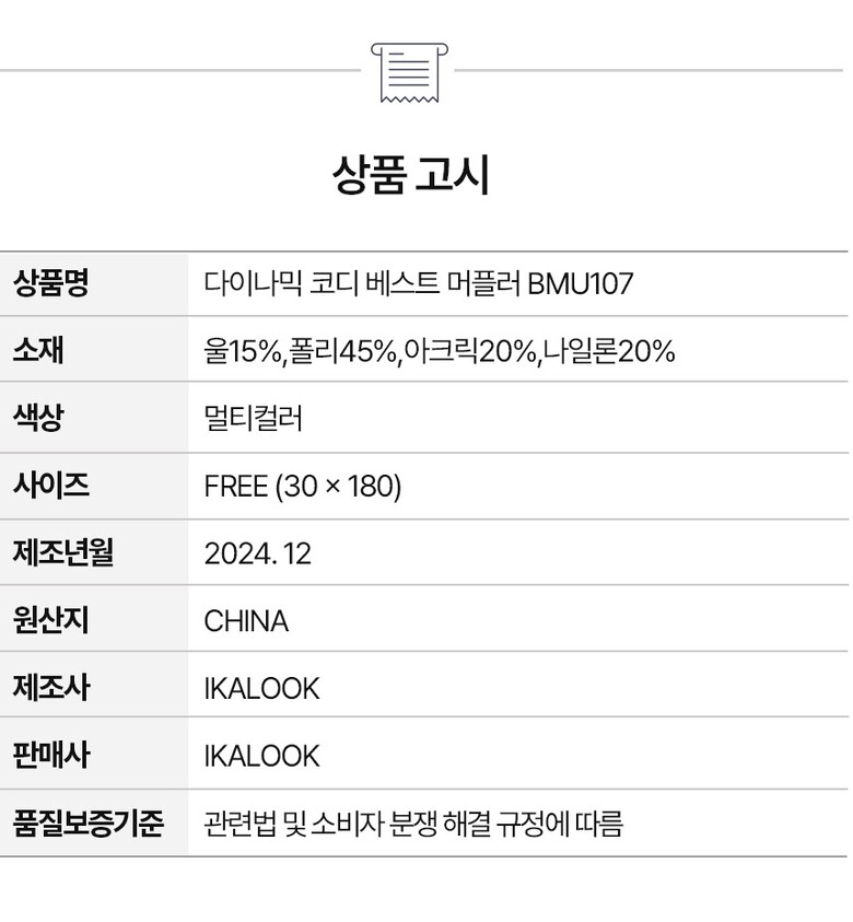 IKALOOK 다이나믹 코디 베스트 머플러 BMU107