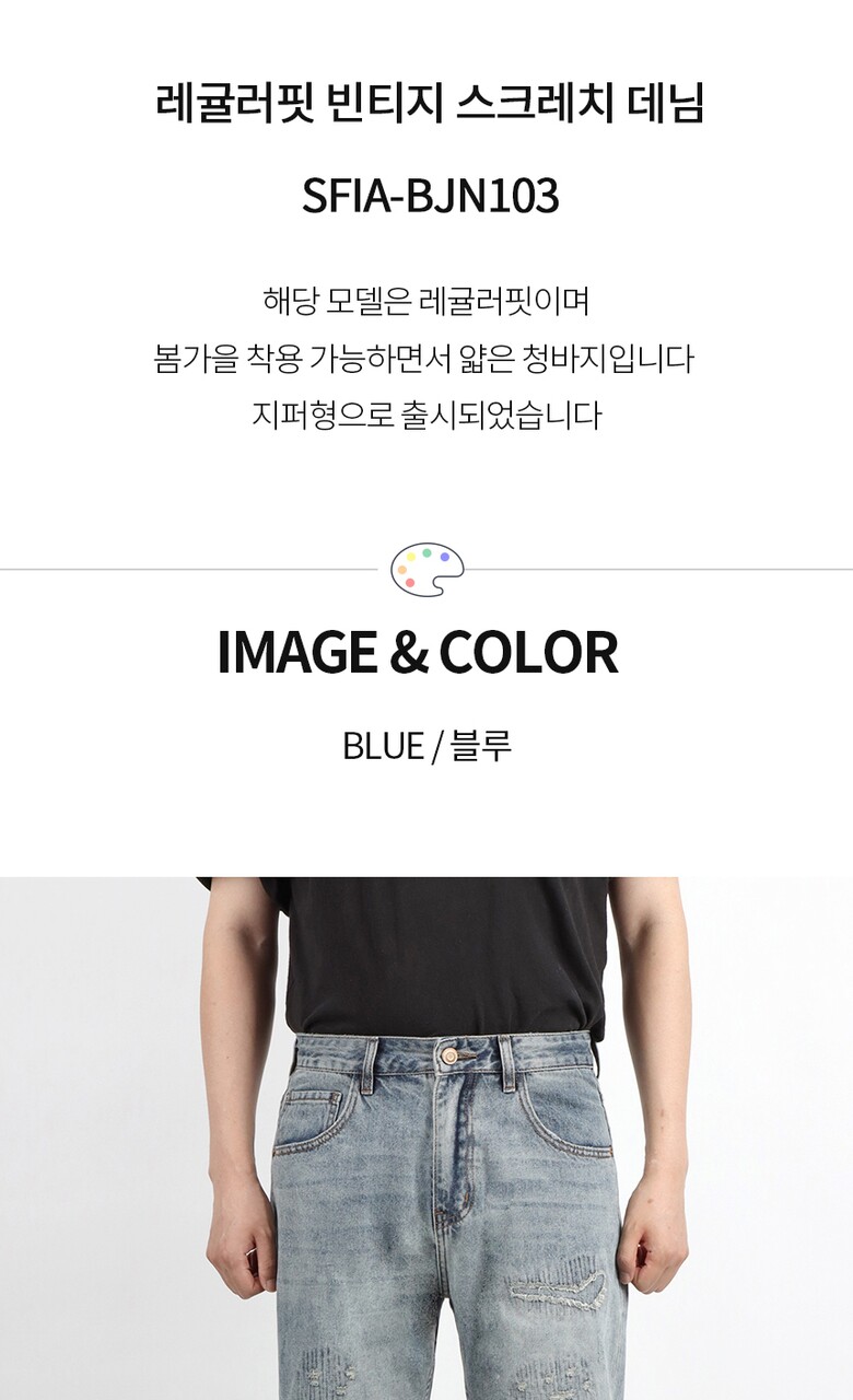 IKALOOK 봄가을 레귤러핏 빈티지 스크레치 데님 BJN103