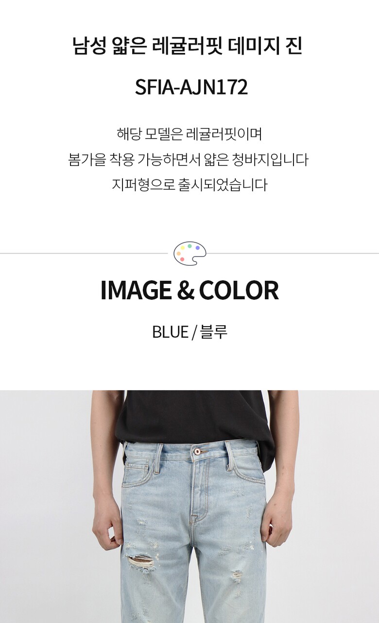 IKALOOK 봄가을 연청 레귤러 핏 데미지 진 AJN172