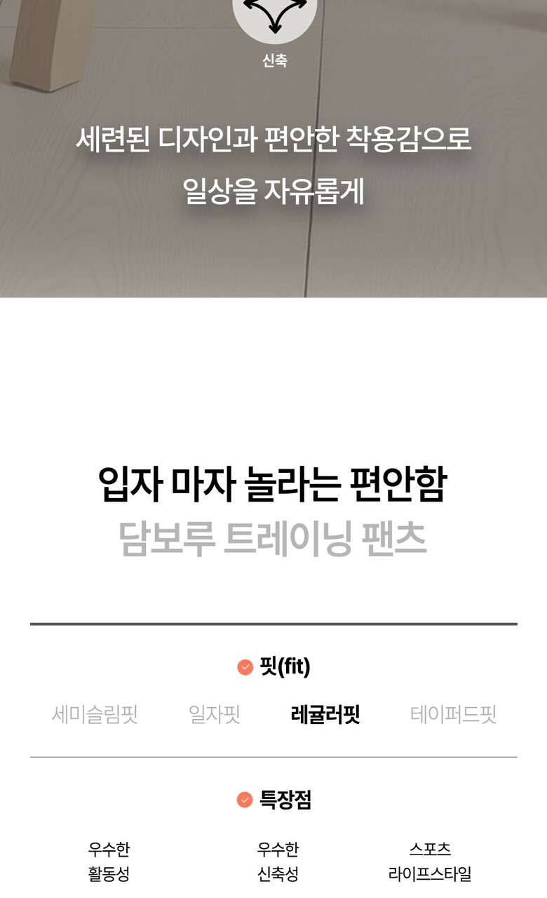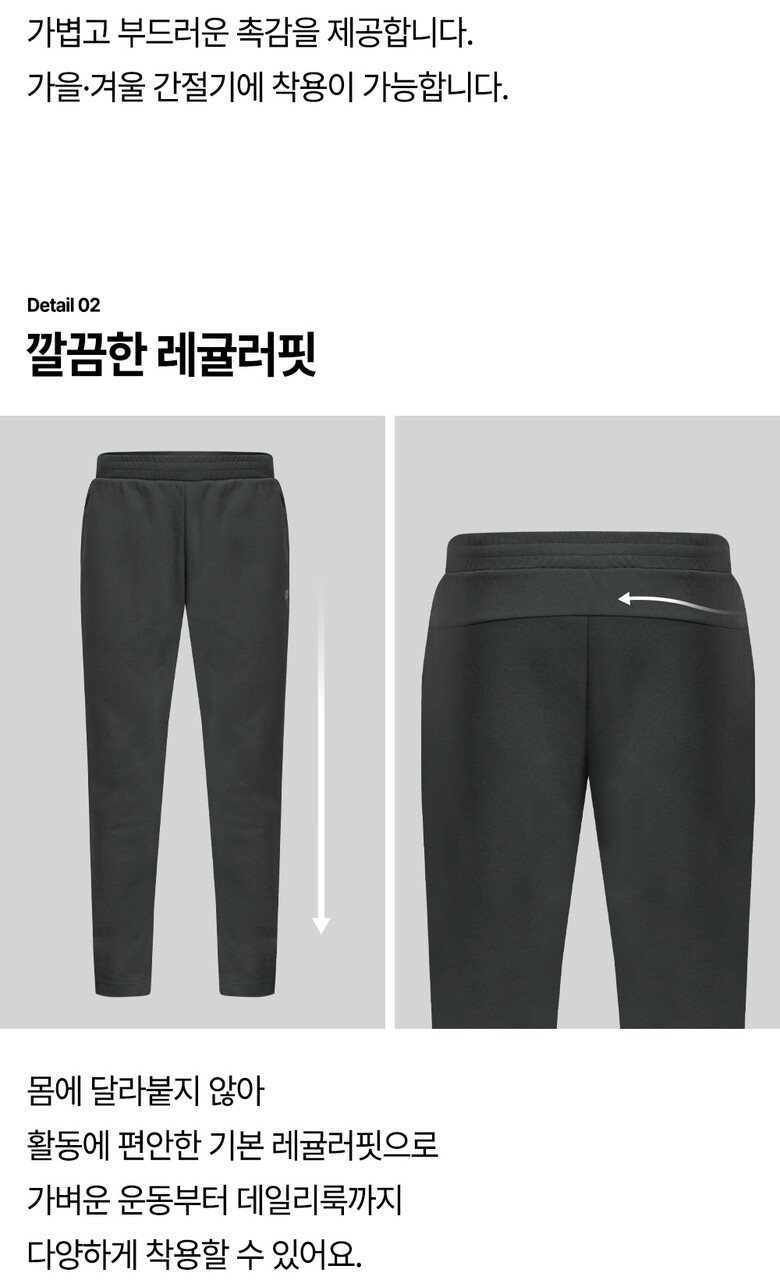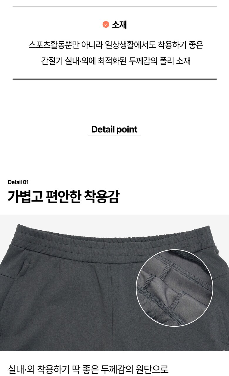 | 1. 제품 소재 (섬유의 조성 또는 혼용률을 백분율로 표시, 기능성인 경우 성적서 또는 허가서) | 다크멜란지 겉감 폴리에스터90% 폴리우레탄10% 블랙 겉감 폴리에스터89% 폴리우레탄11% |