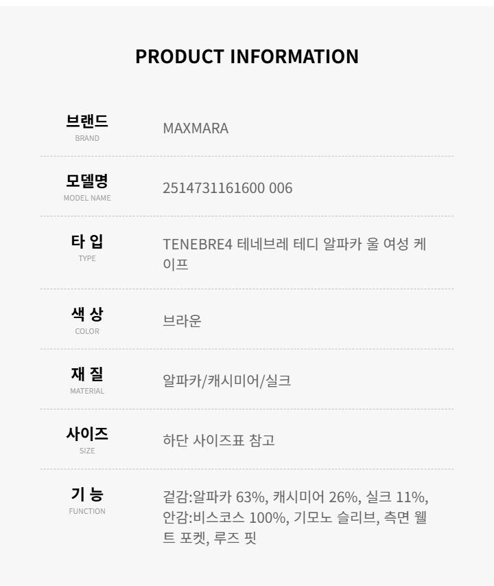 막스마라 케이프 2514731161600 006 테네브레 테디 알파카 울 여성케이프 당일발송