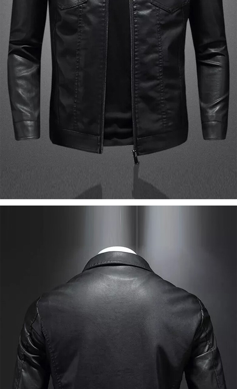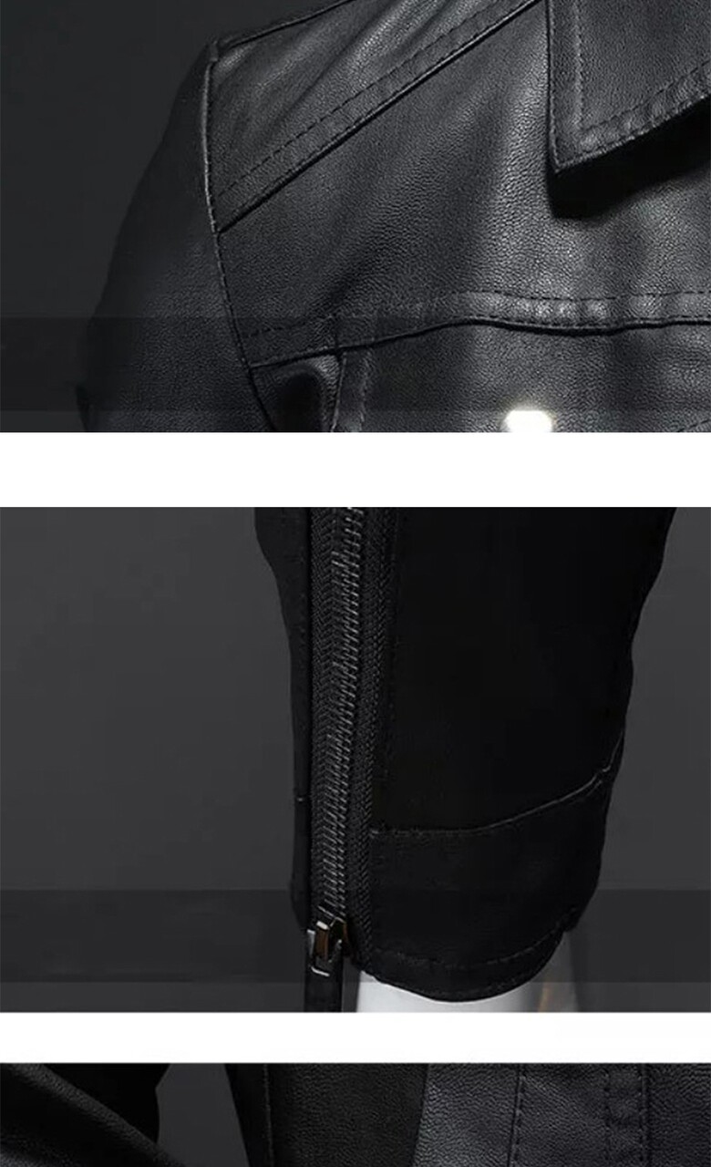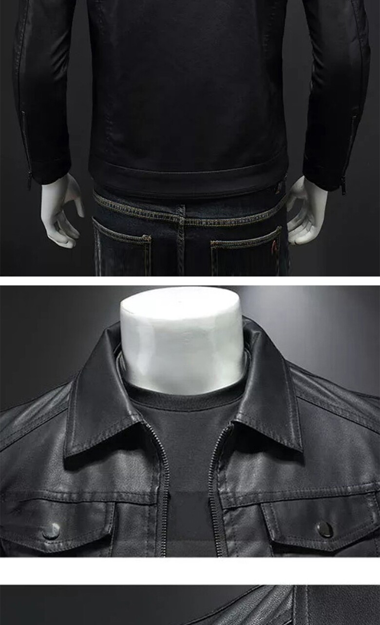 블랙 집업 카라넥 슬림 인조가죽 자켓 LJP122