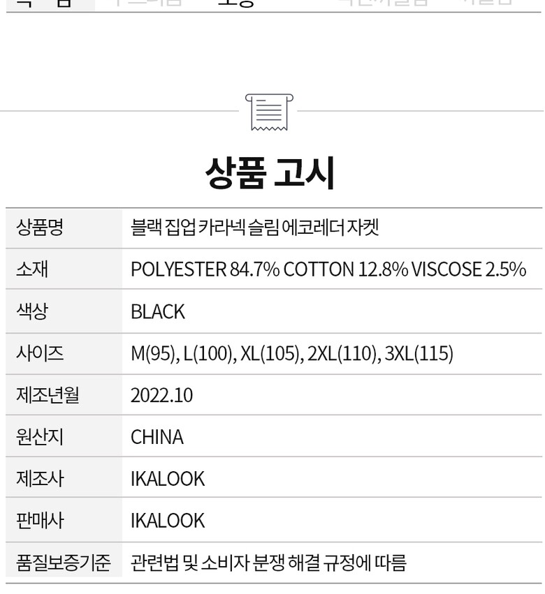 1. 제품 소재 (섬유의 조성 또는 혼용률을 백분율로 표시, 기능성인 경우 성적서 또는 허가서) | 상세페이지 참고 |