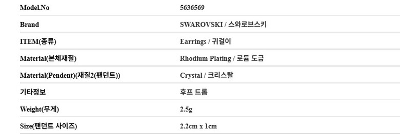 7. 주요 사양 | 로듐 도금 귀걸이 |